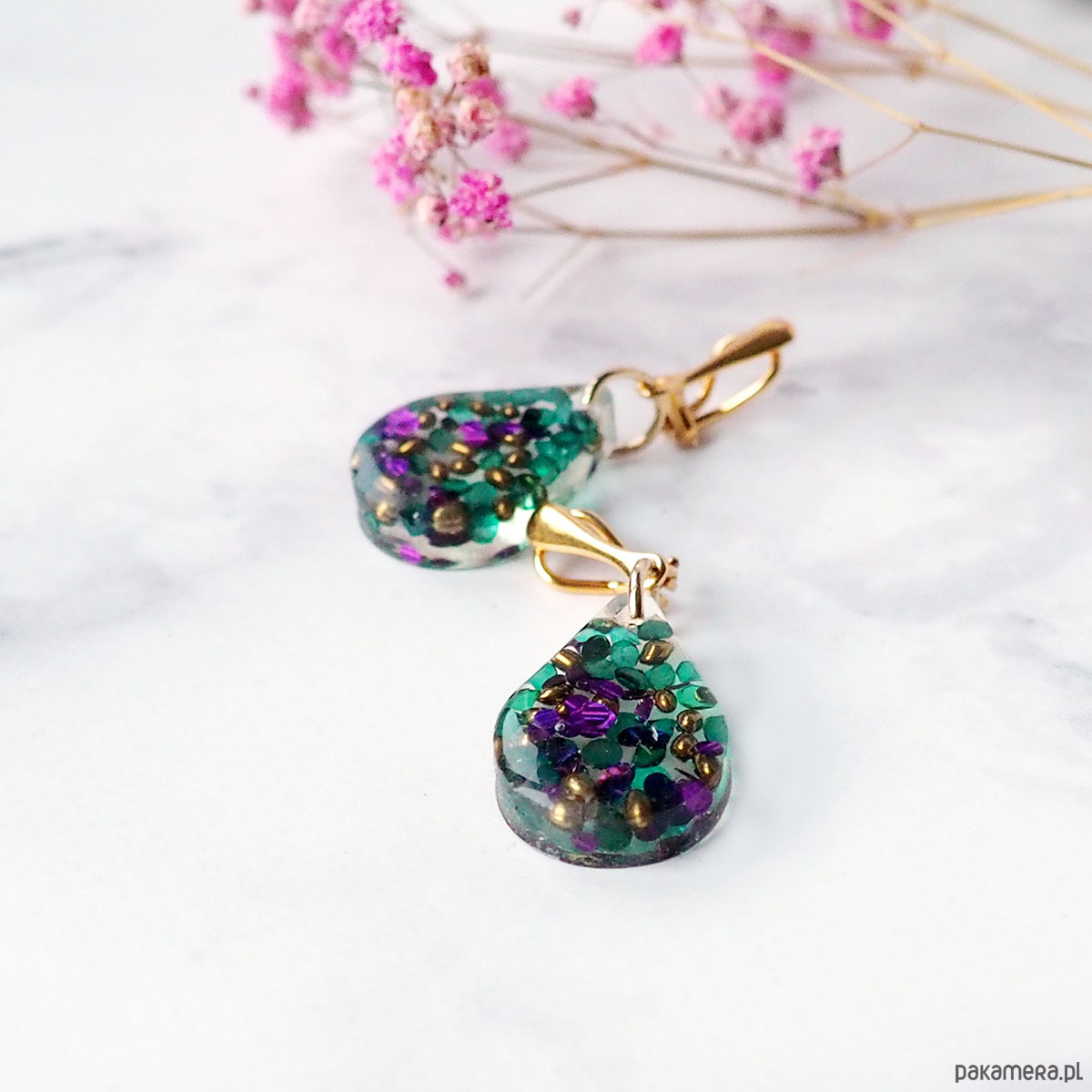 KLIPSY SREBRO pozłacane24k i zawieszki z żywicy