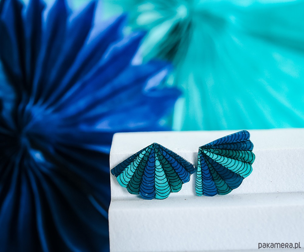 Kolczyki zostaną zapakowane w tekturowy kartonik z wypełnieniem nawiązującym kolorystycznie do biżuterii.