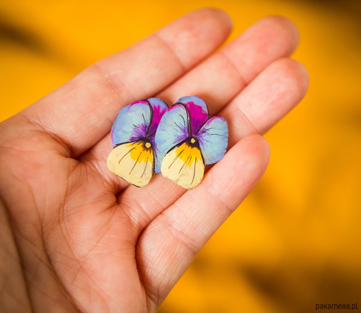 Urocze klipsy z bratkami . Idealne do letnich stylizacji.