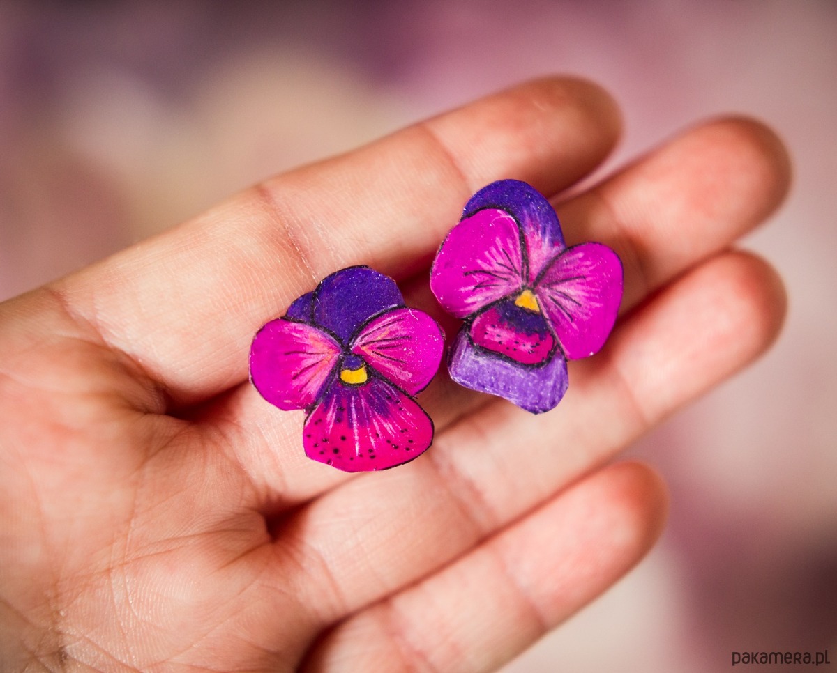 Urocze klipsy z bratkami . Idealne do letnich stylizacji.