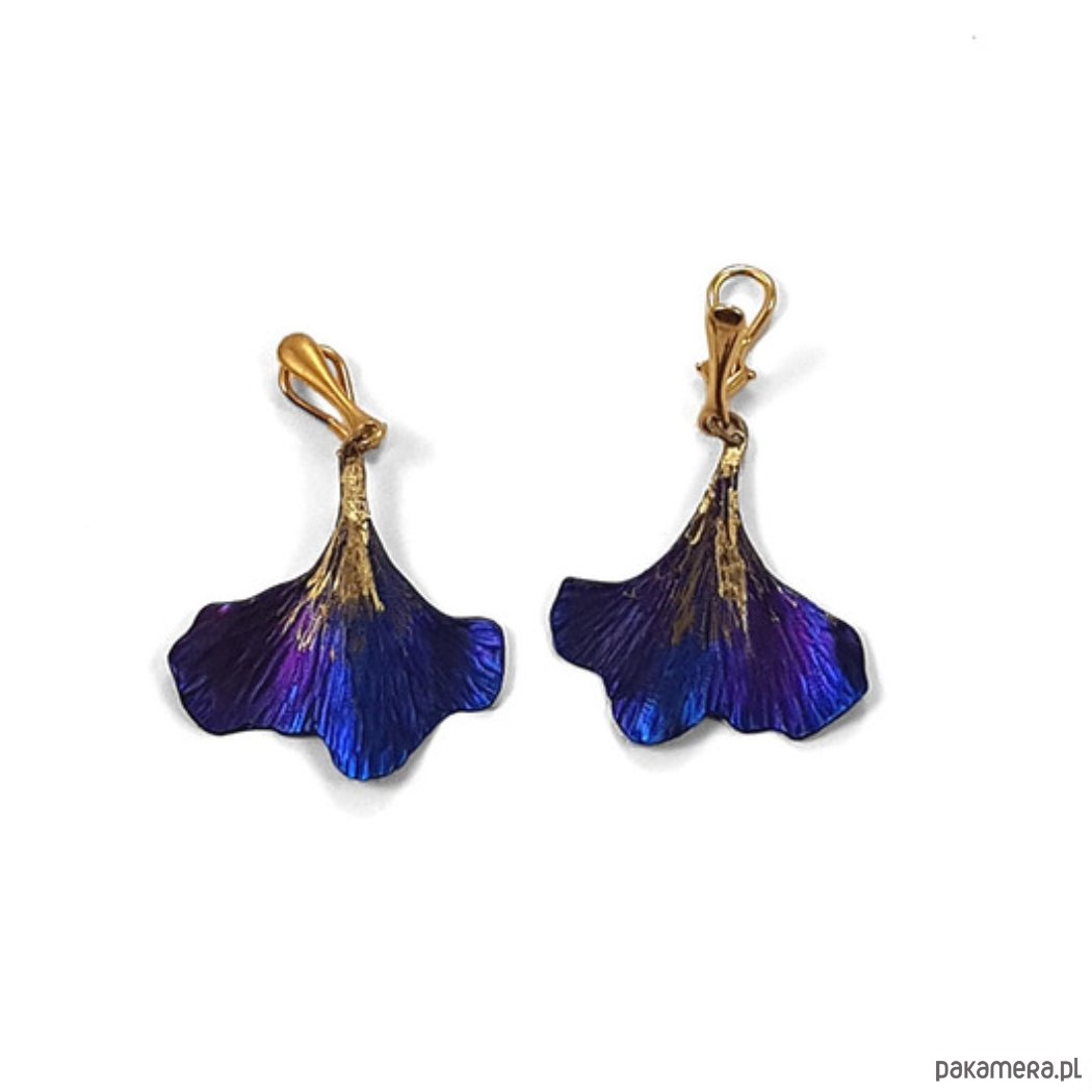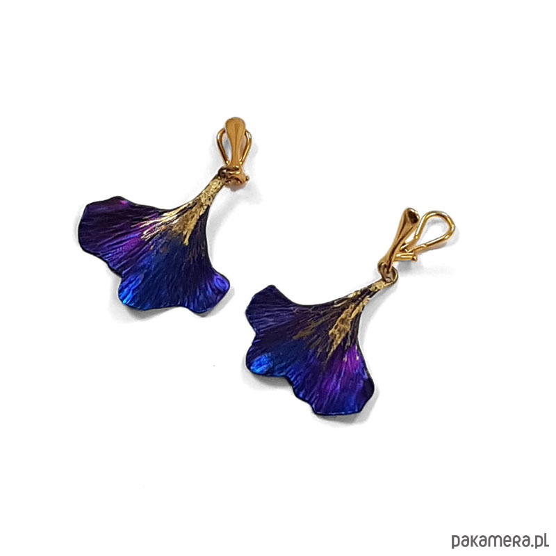 Klipsy w kształcie liści w całości zrobiłem ręcznie z tytanu. Są lekkie, efektowne i mienią się kolorami. Są wielkości 3,5cm x 3,5 .W całości z pozłacanym srebrnym zapięciem-klips- są długości ok.5 cm. Na odwrocie sygnowane wygrawerowanym podpisem. Tytan jest niezwykle lekkim i trwałym metalem który nie wywołuje żadnych alergii-jest hipoalergiczny-stosowany w chirurgii i stomatologii. Odporny na działanie chemikaliów. Anodowany pokrywa się tlenkami o intensywnych kolorach które zachowują swą barwę przez wiele lat. Wysyłam do paczkomatu. Wystarczy w uwagach zapisać ; nr.tel. /nr. paczkomatu i e-mail