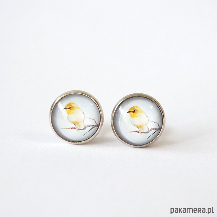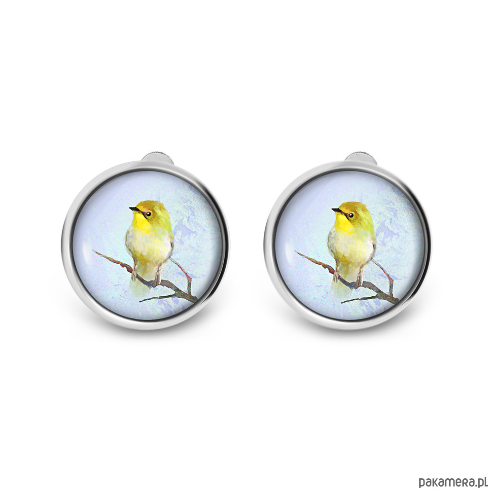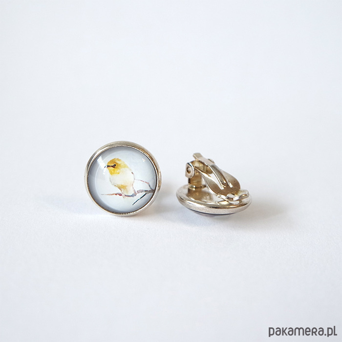Grafika ukryta w prostych, eterycznych klipsach, pod osłoną przeźroczystego półokrągłego szkiełka.