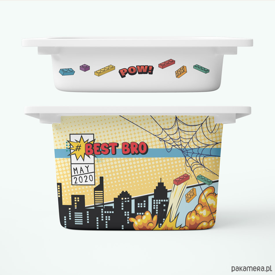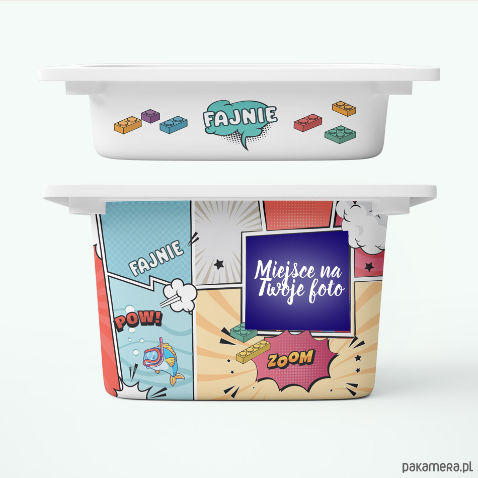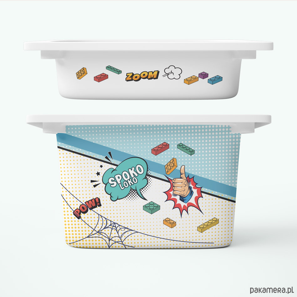 Klocki i komiks - naklejki na pojemniki na zabawki ze zdjęciem