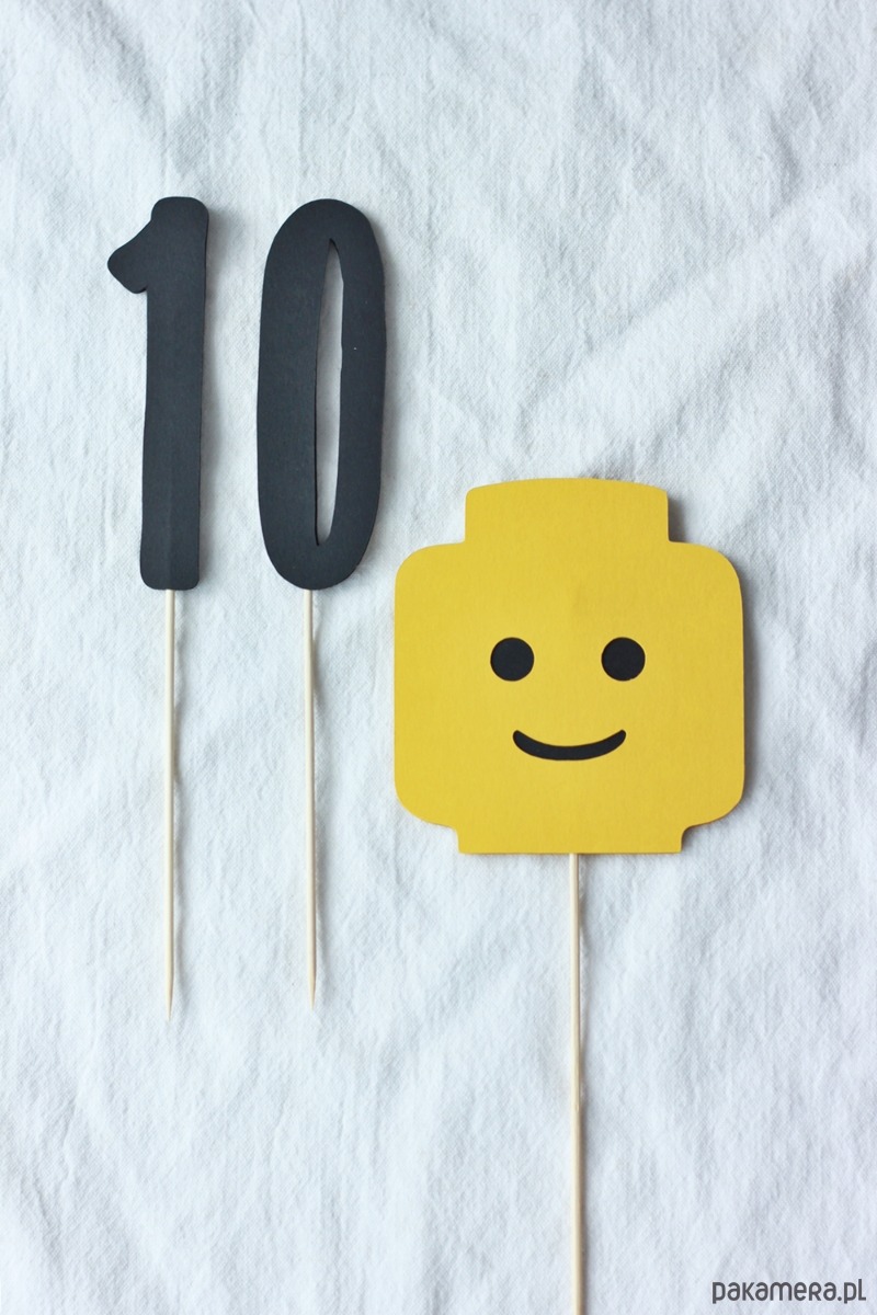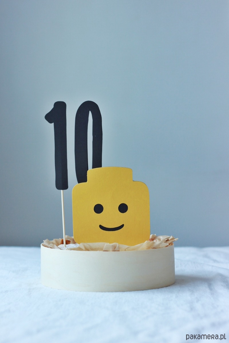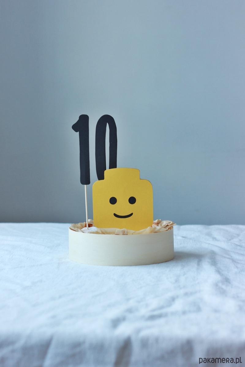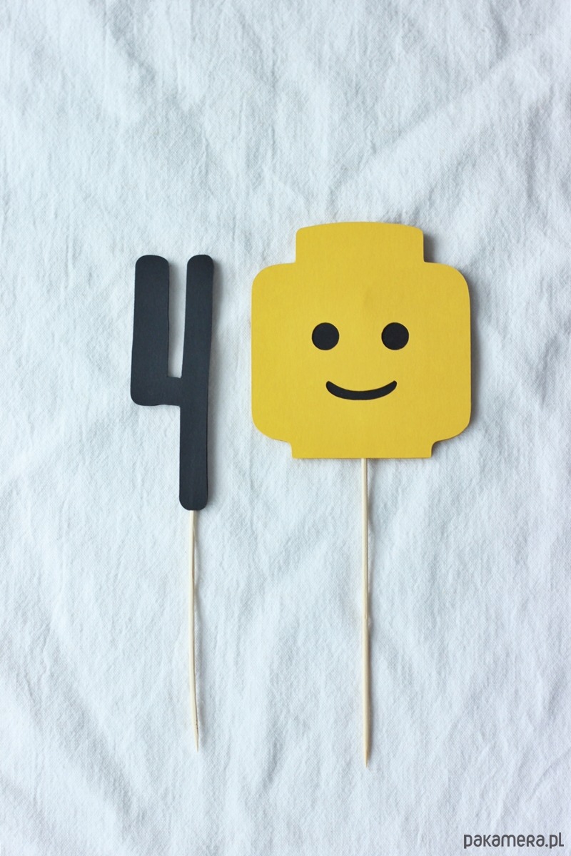 Klocki. Żółty ludzik i cyfra topper na tort
