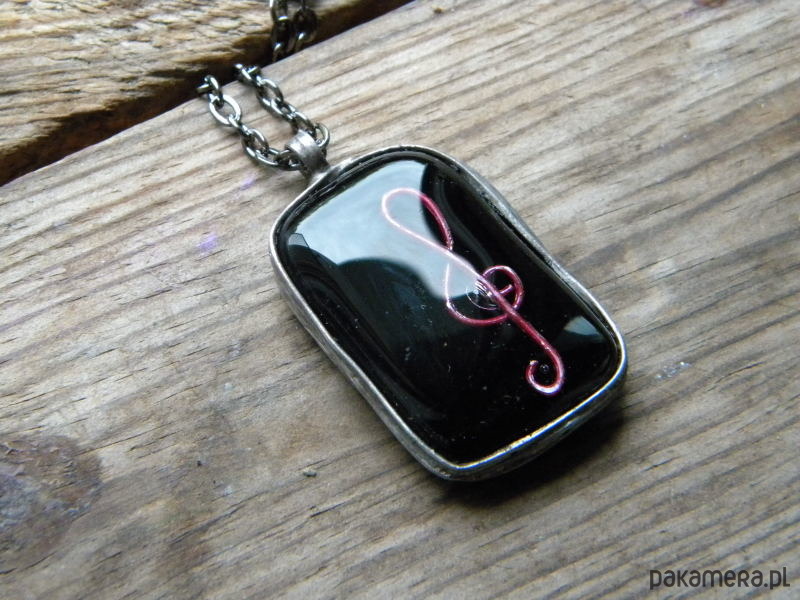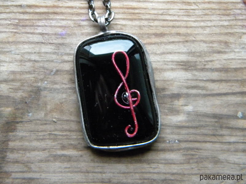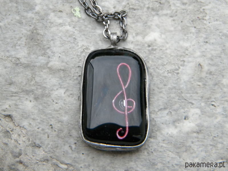 Klucz wiolinowy na czerni - naszyjnik