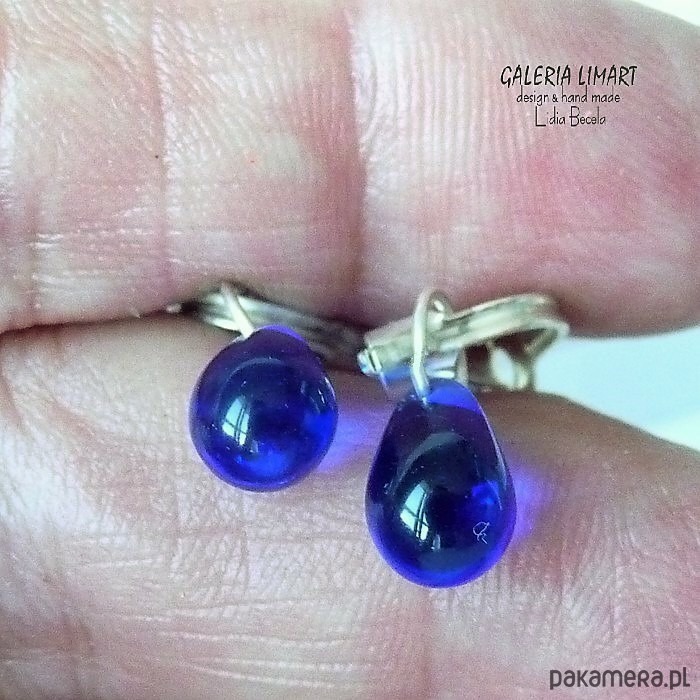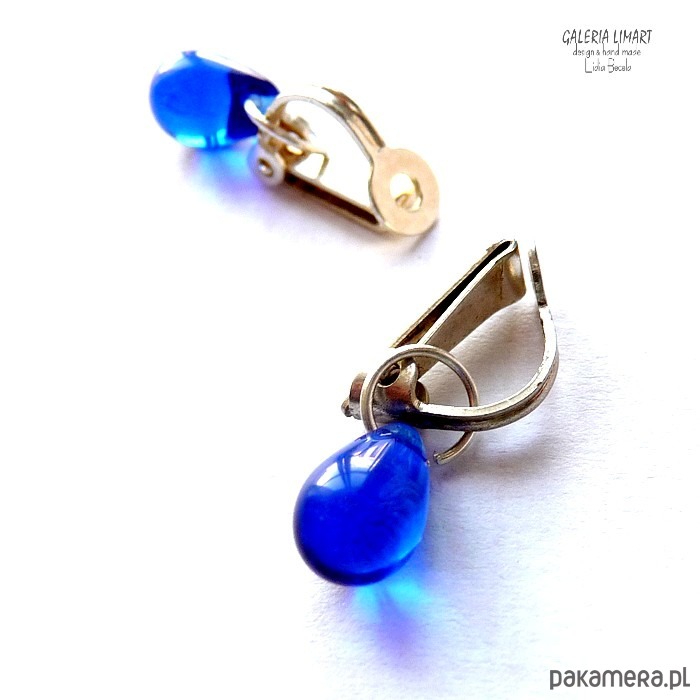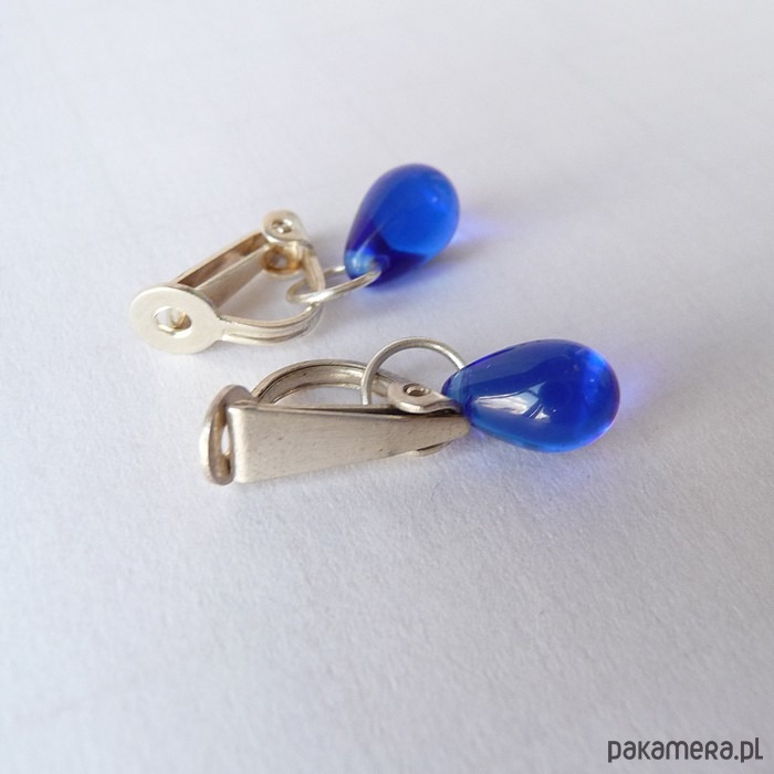 Kobaltowa kropelka. Klipsiki urocze. Dla tych co nie lubią....