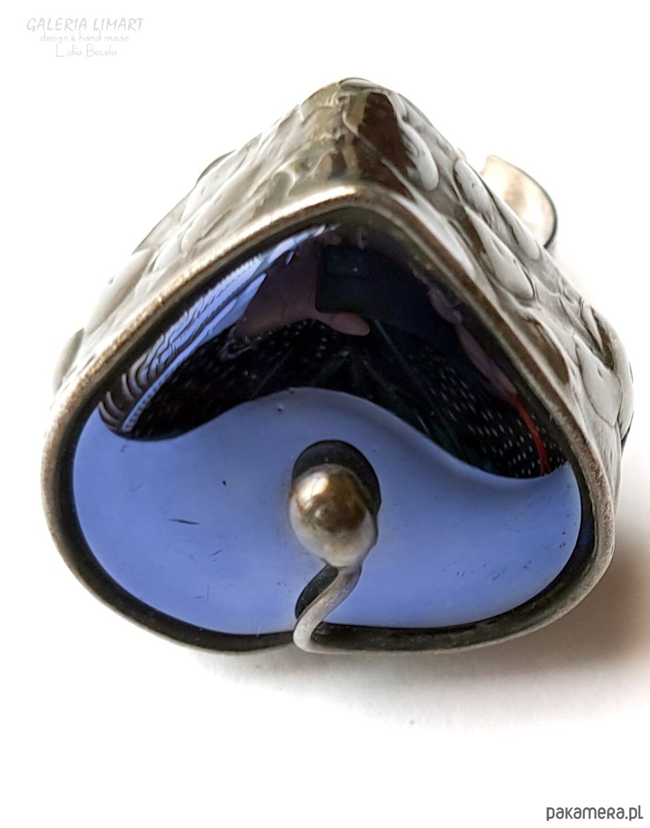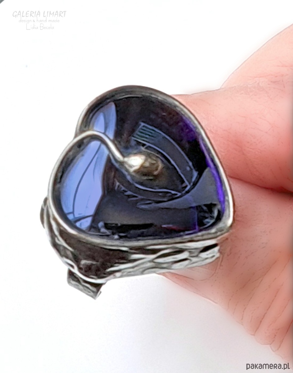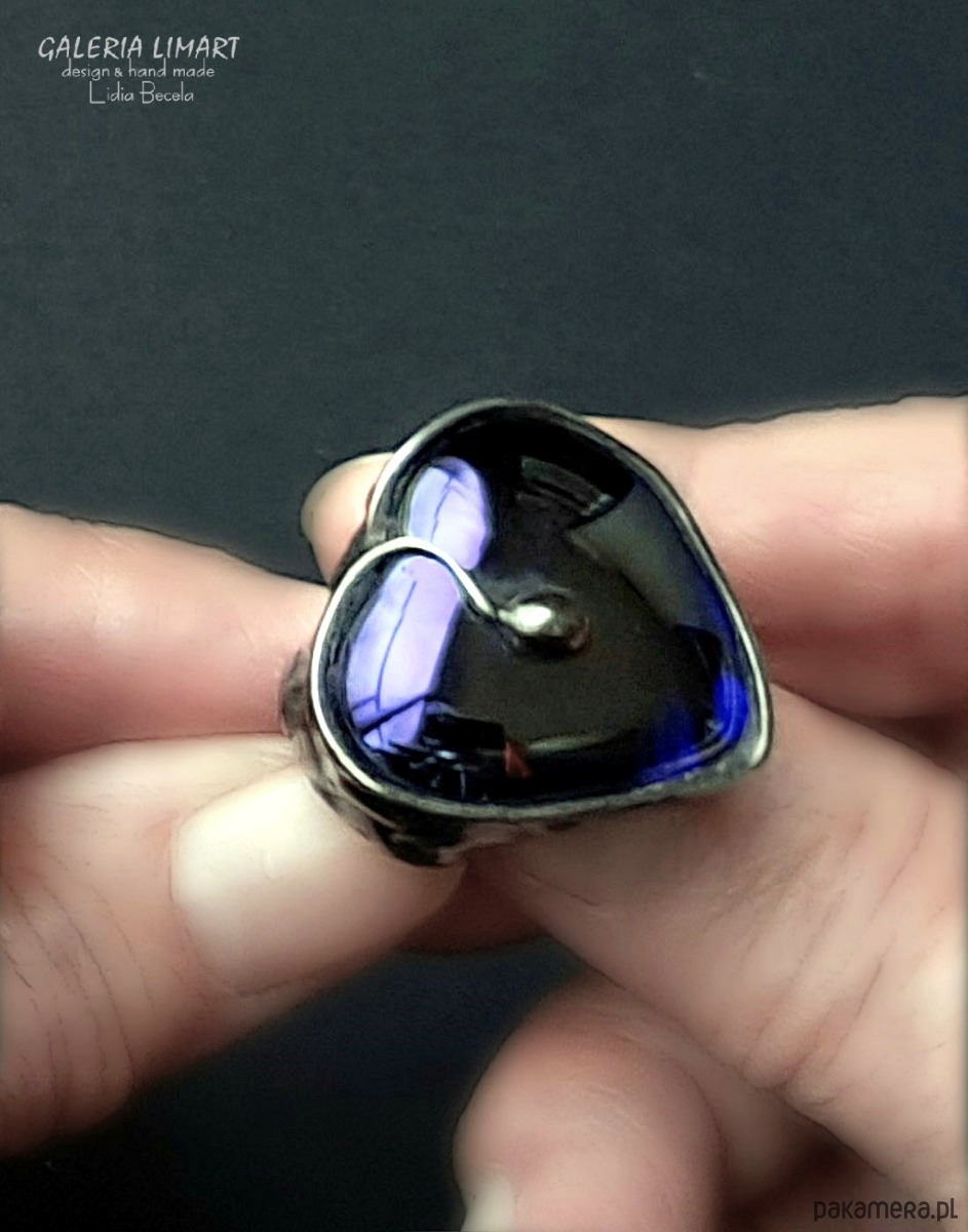Serce z kobaltowego szkła kwarcowego pierścionek unikatowy handmade