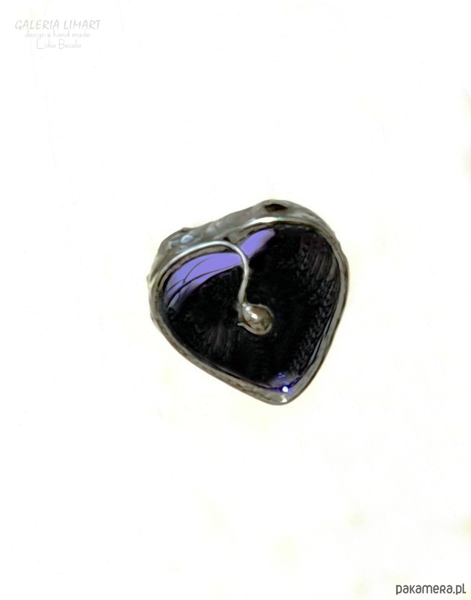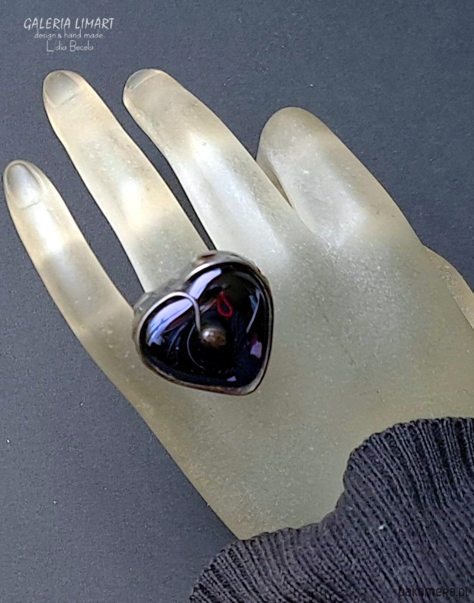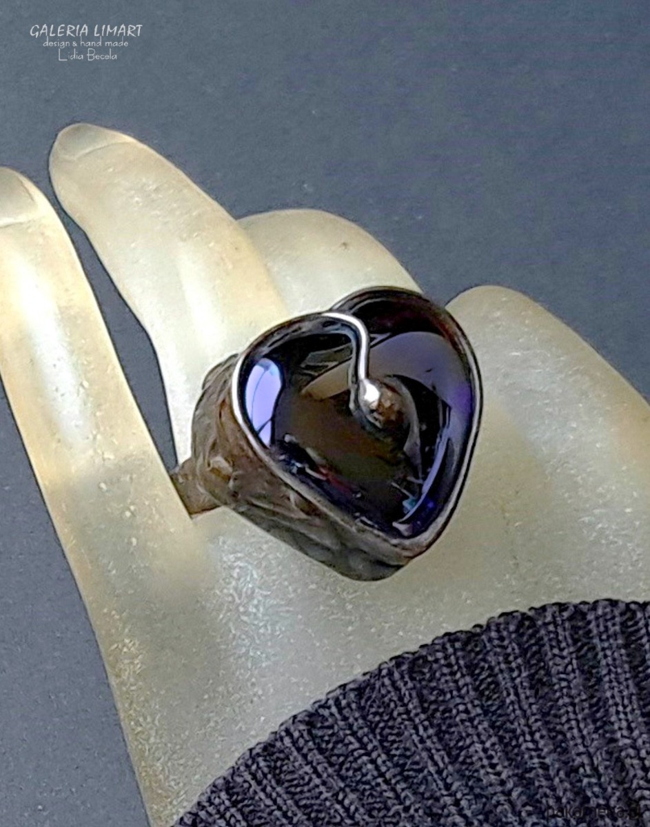 Serce z kobaltowego szkła kwarcowego pierścionek unikatowy handmade