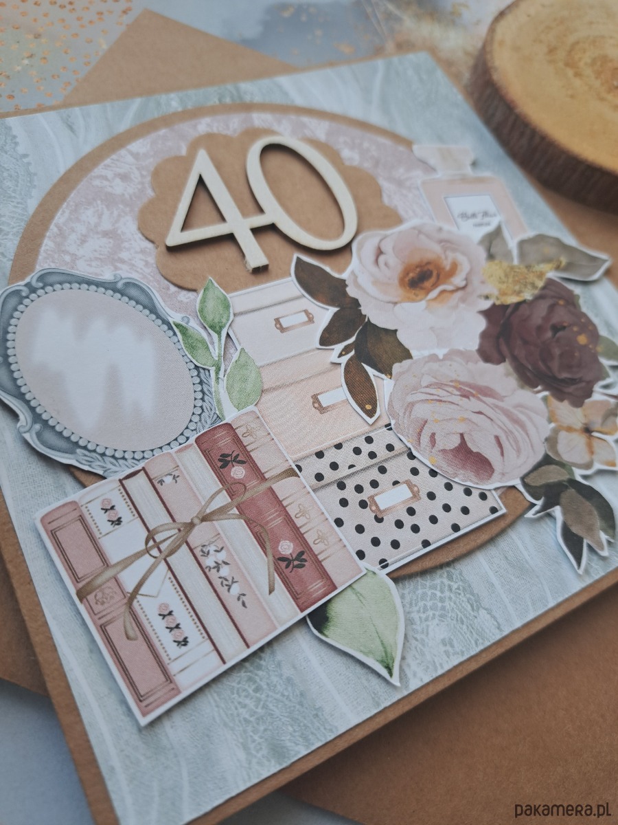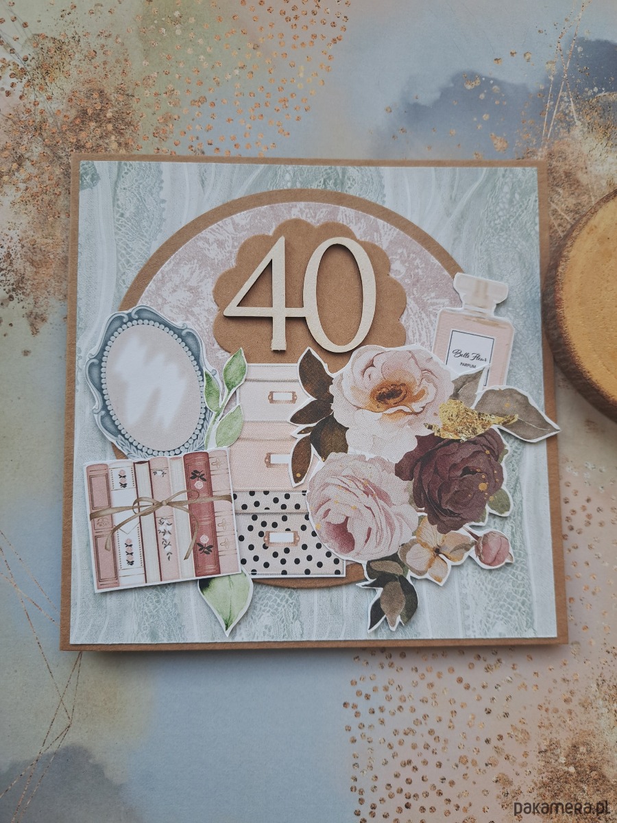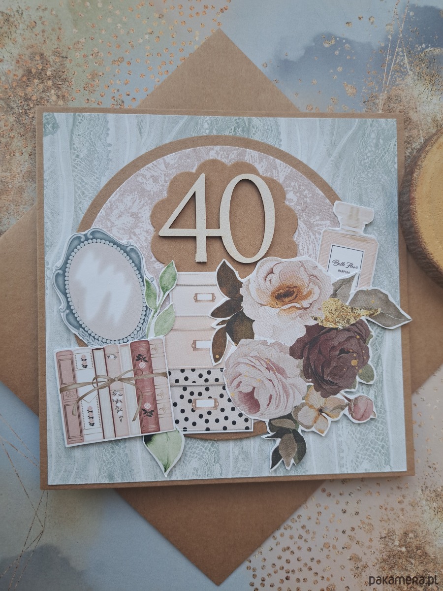 Ręcznie robiona kartka na 40-ste urodziny.