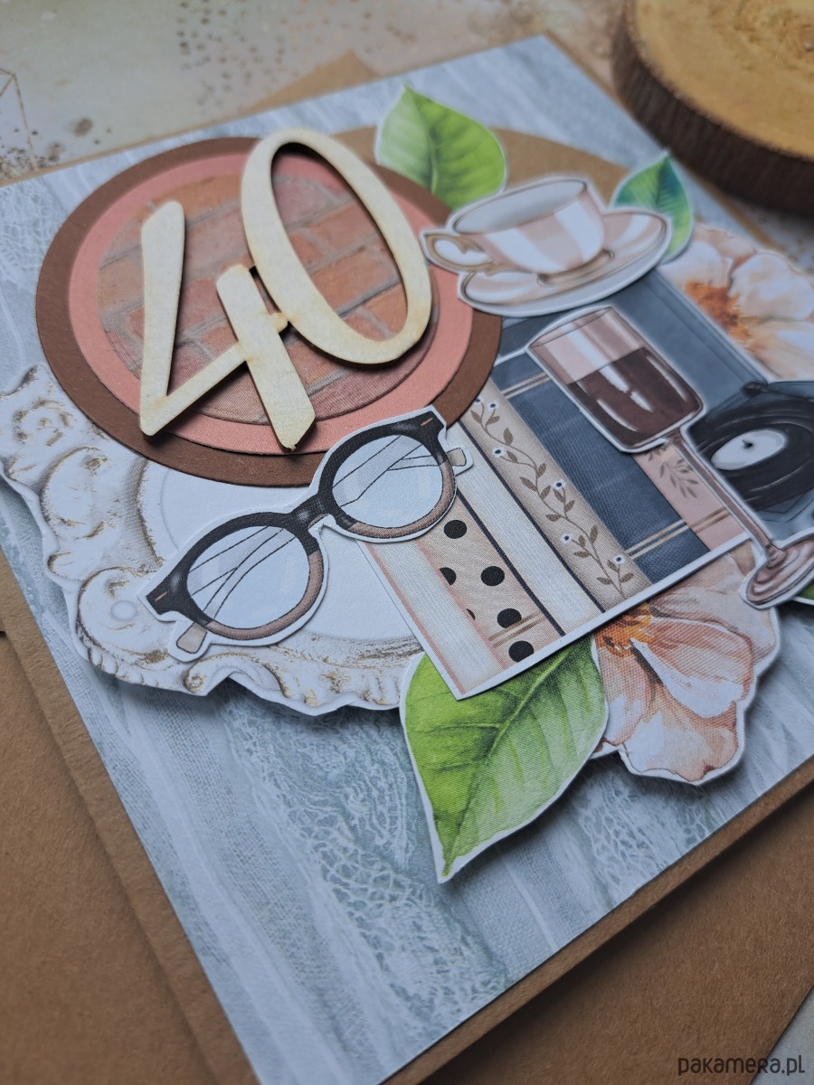 Ręcznie robiona kartka na 40-ste urodziny.