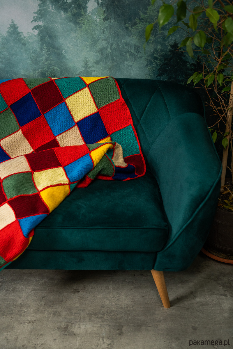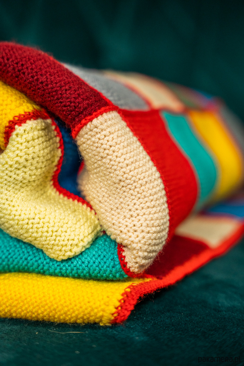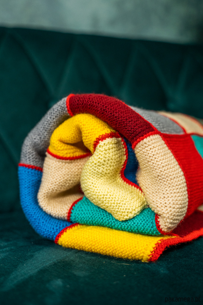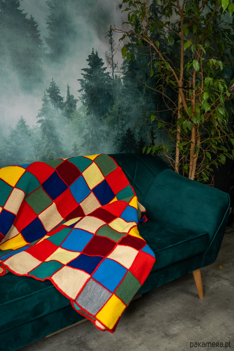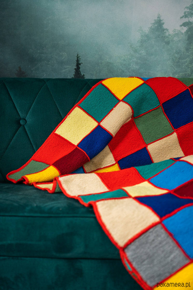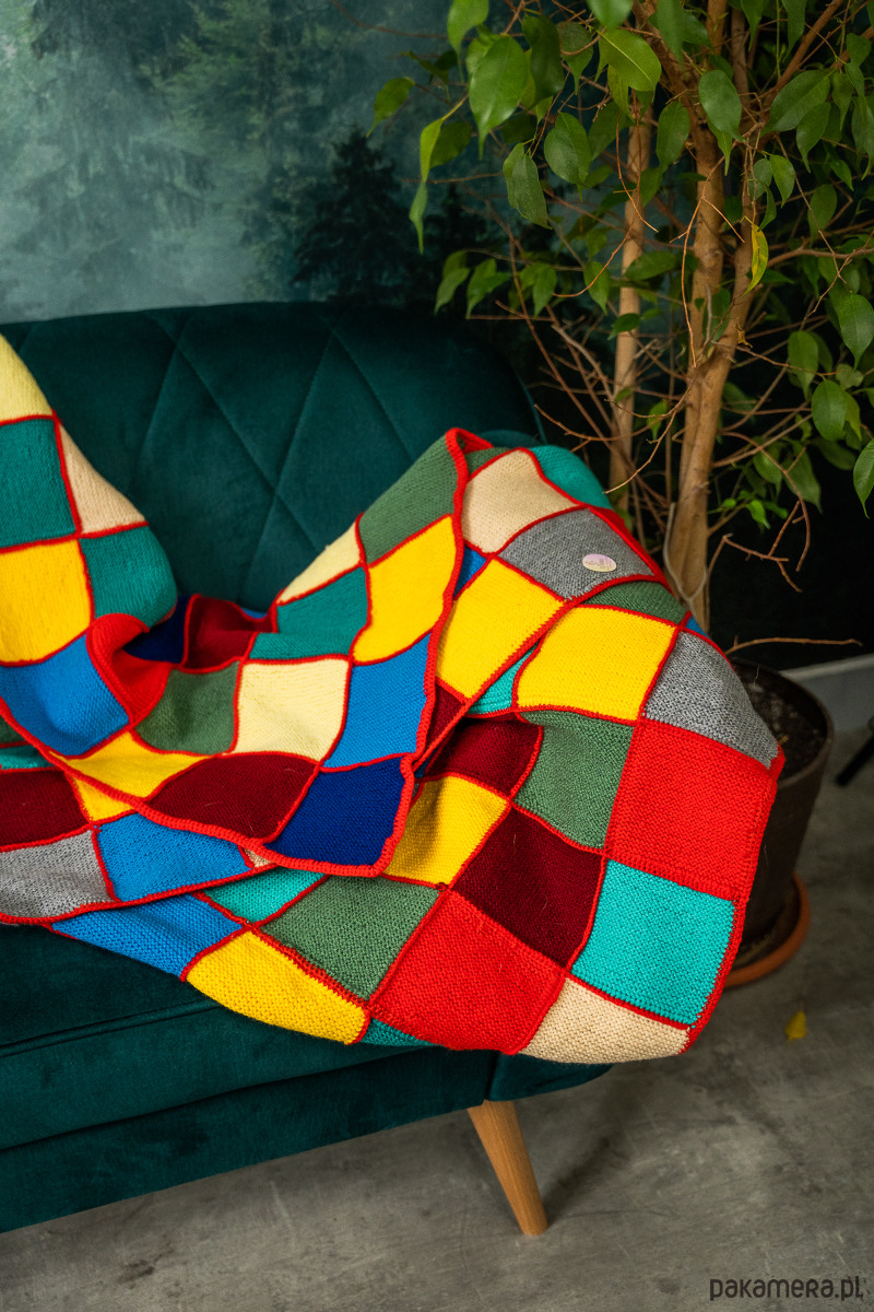 Koc/narzuta/pled/kapa pełna kolorów. Skład: mix włóczek o różnych składach. W ten sposób wykorzystujemy pozostałości kolorowych włóczek użytych do innych projektów.