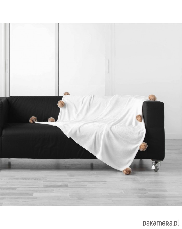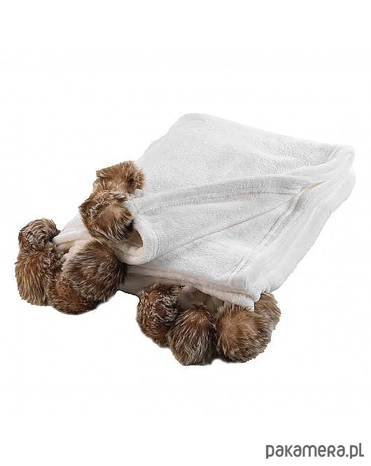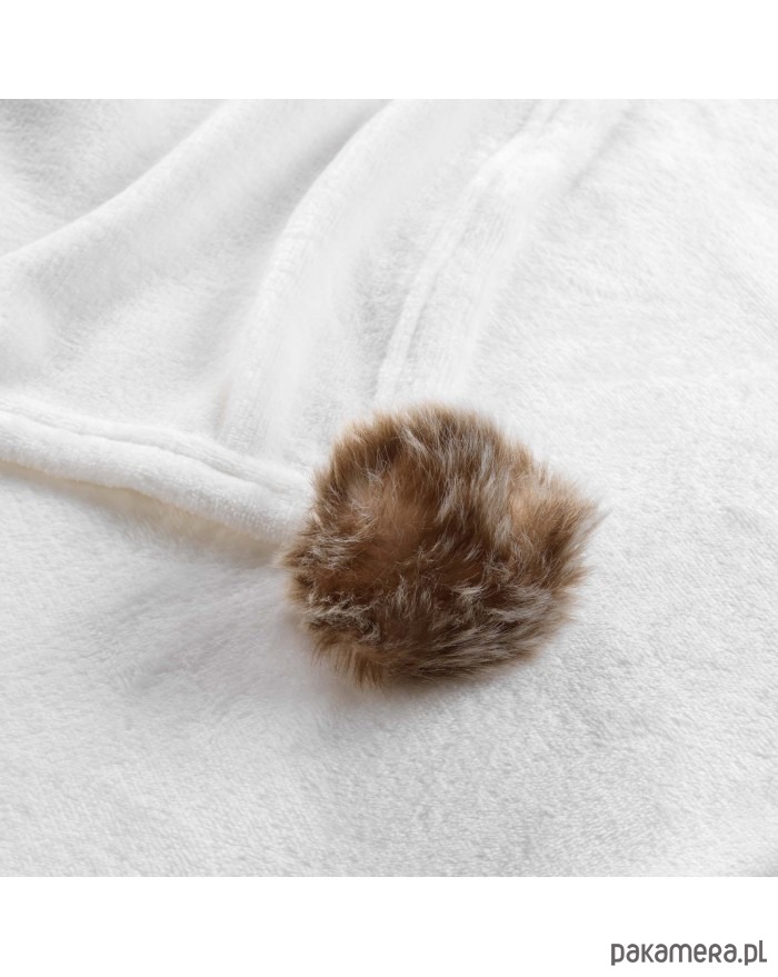 Dla miłośników ciepłych i przytulnych pledów idealny koc z wytrzymałego poliestru. Puchaty i przyjemny w dotyku posiada duże pompony wykonane ze sztucznego futra. Sprawią, że wnętrze nabierze charakteru skandynawskiego domku w górach. Na jesienne i zimowe wieczory nieodzowny zarówno do przykrycia się podczas relaksu na kanapie, jak i do udekorowania łóżka.
