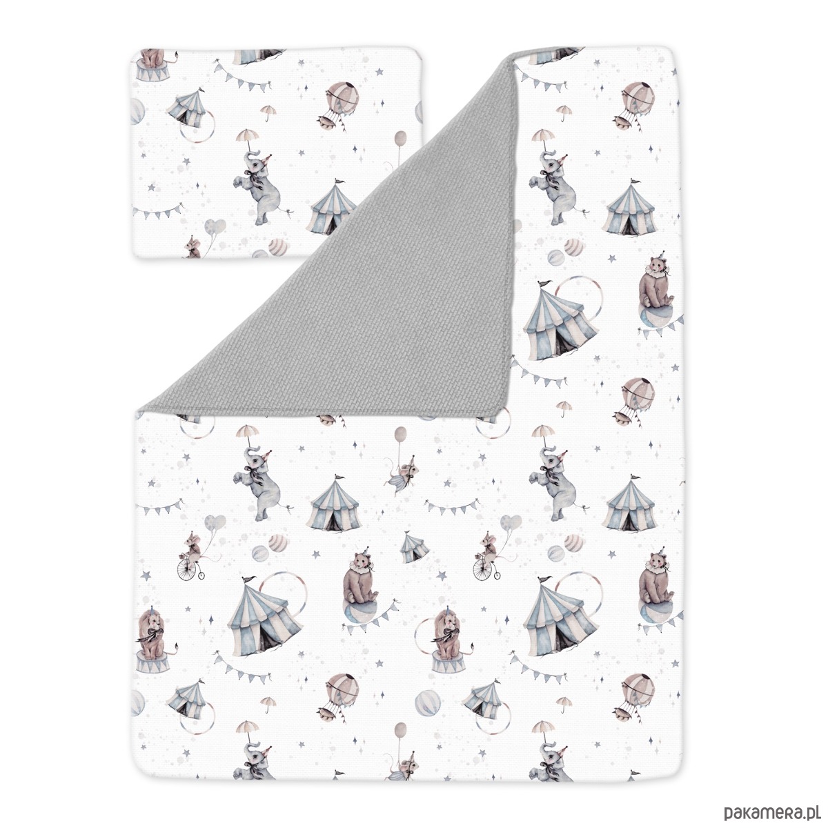Koc+ poduszka Baśniowy cyrk i velvet szary 100