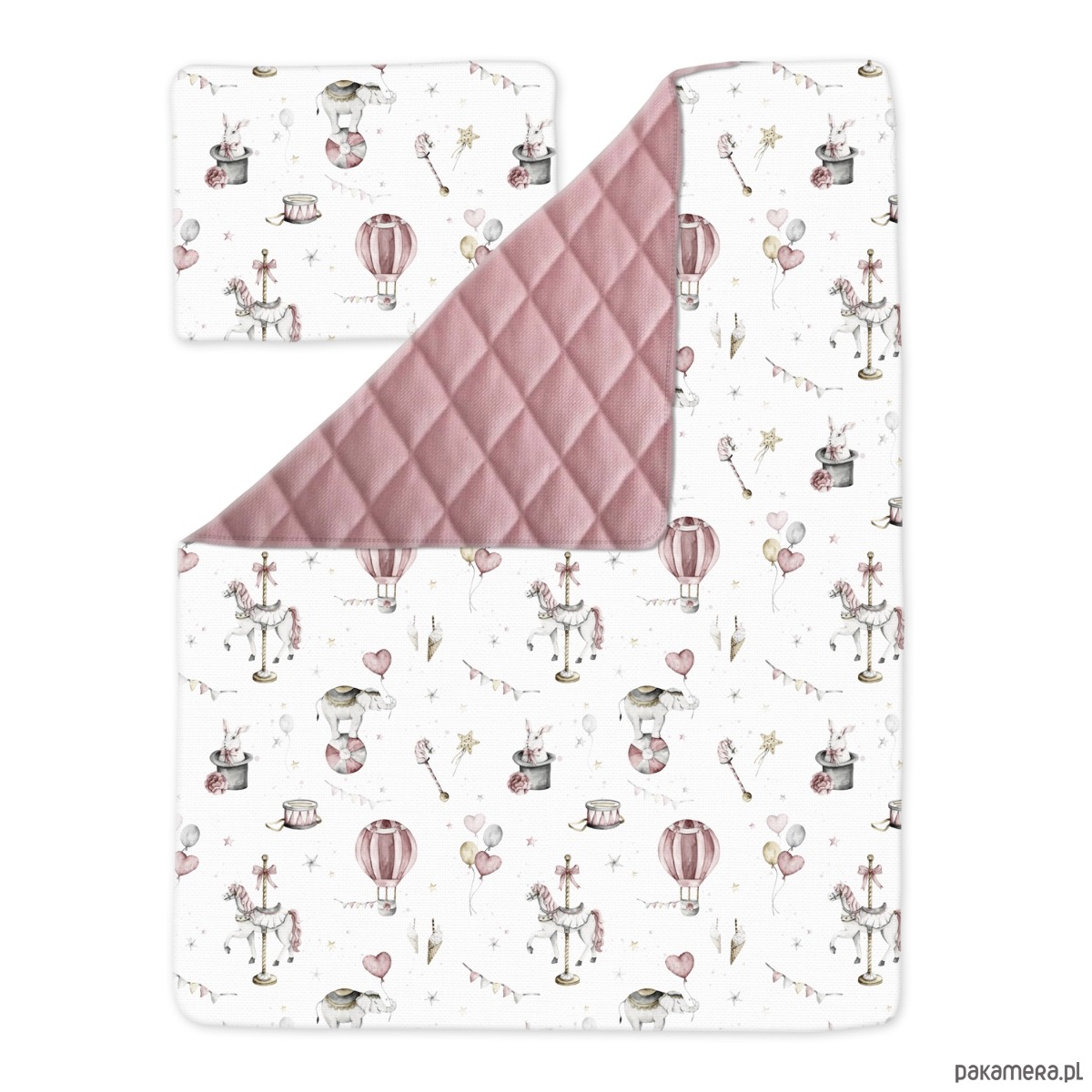 Koc + poduszka Circus i velvet pikowany brudny róż 100