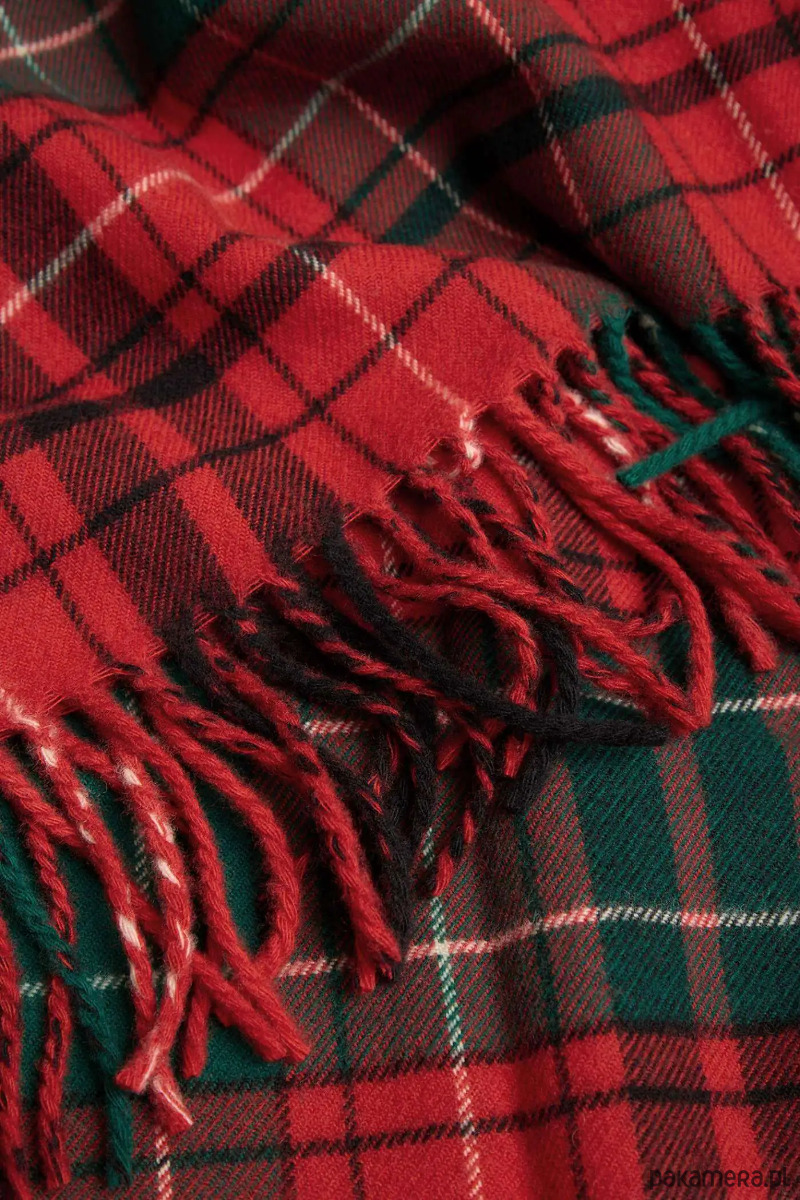 Klasyczna krata w odcieniach czerwieni, zieleni i kremu sprawia, że koc staje się nie tylko praktycznym okryciem, ale też piękną ozdobą wnętrza. Wystarczy rozłożyć go na sofie lub fotelu, by natychmiast wprowadzić świąteczny nastrój pełen ciepła i domowego spokoju.