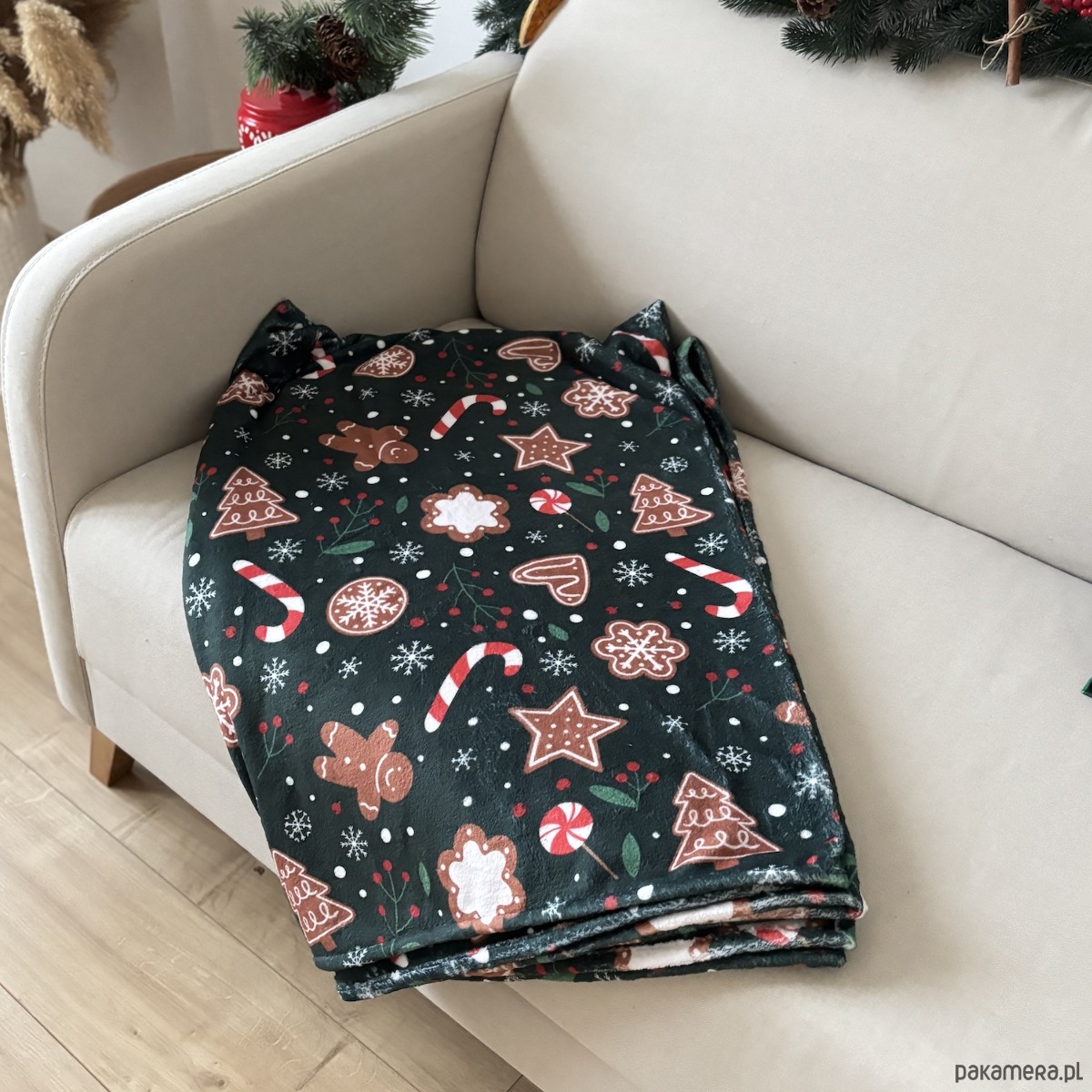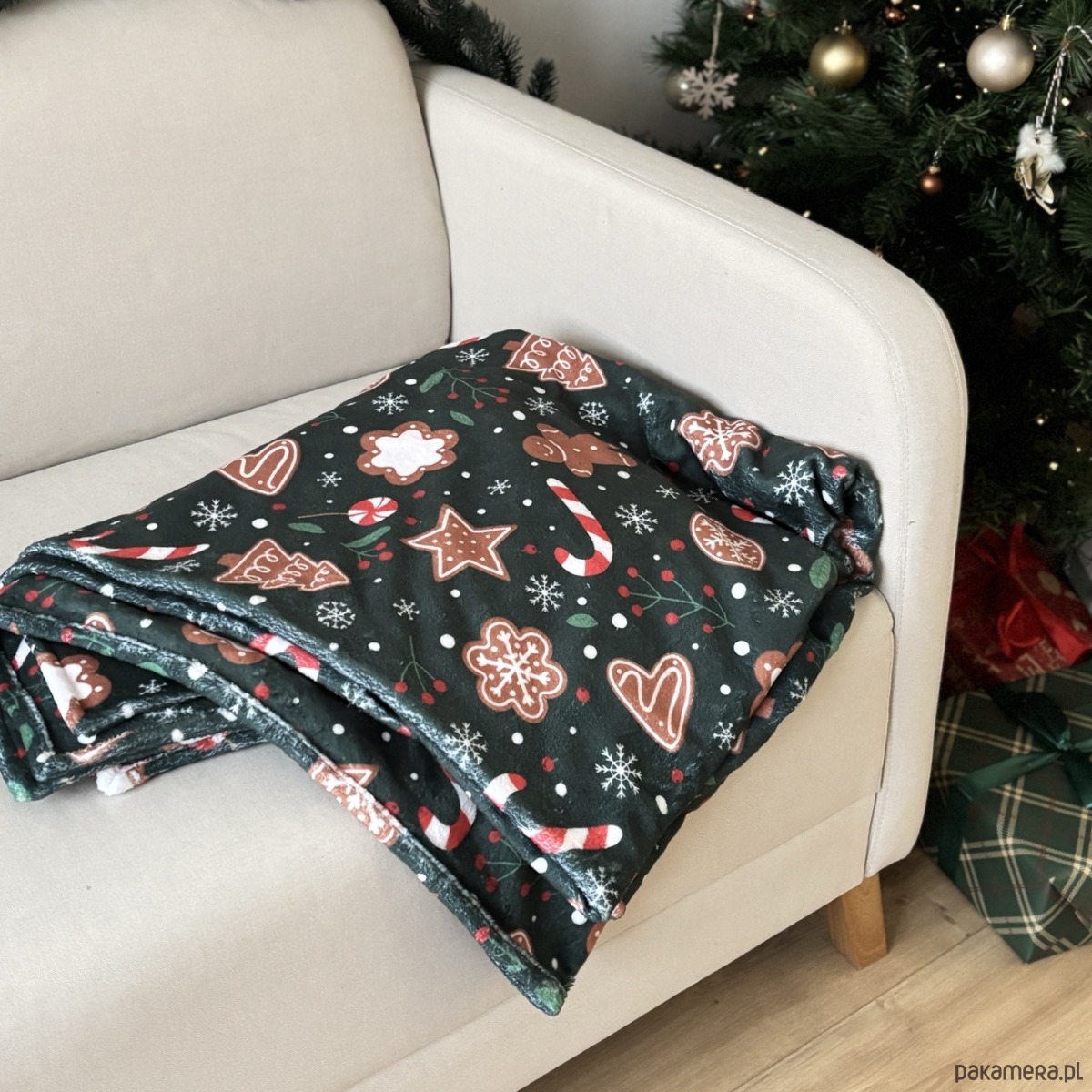 Mięciutki koc w z motywem świątecznym w ciastka Pierniczki
