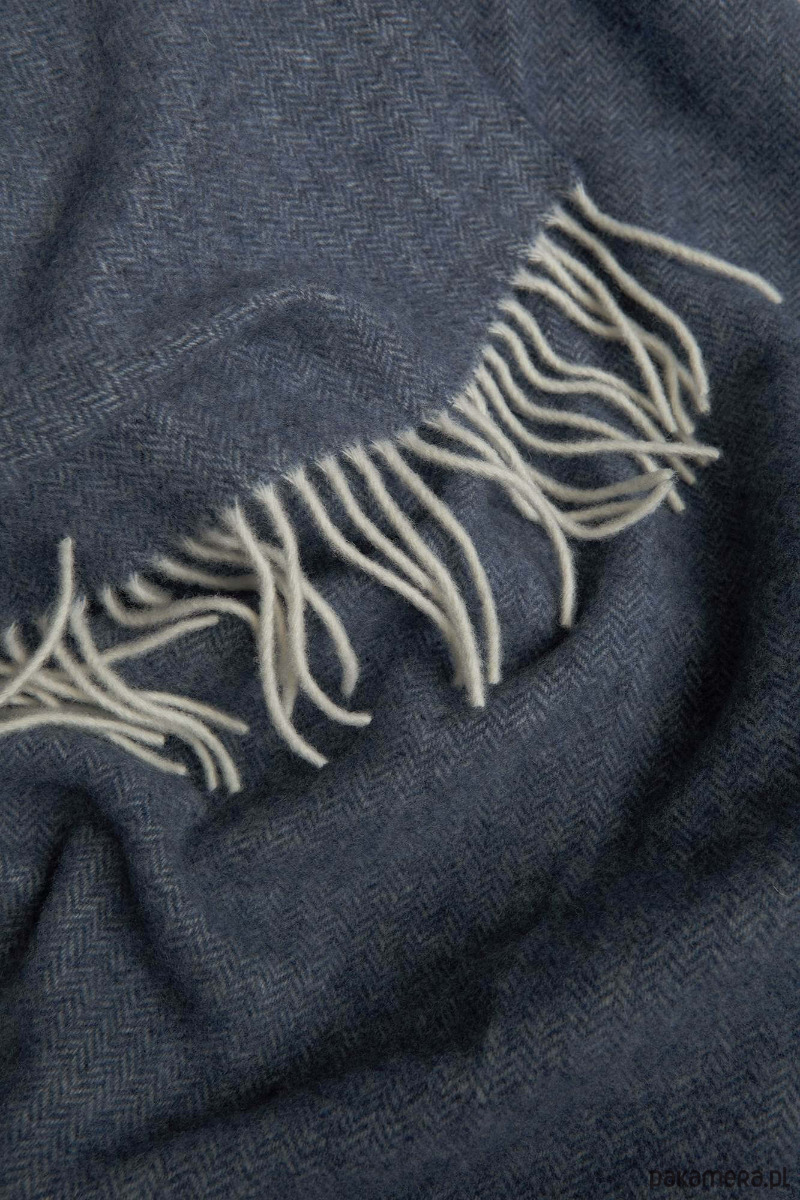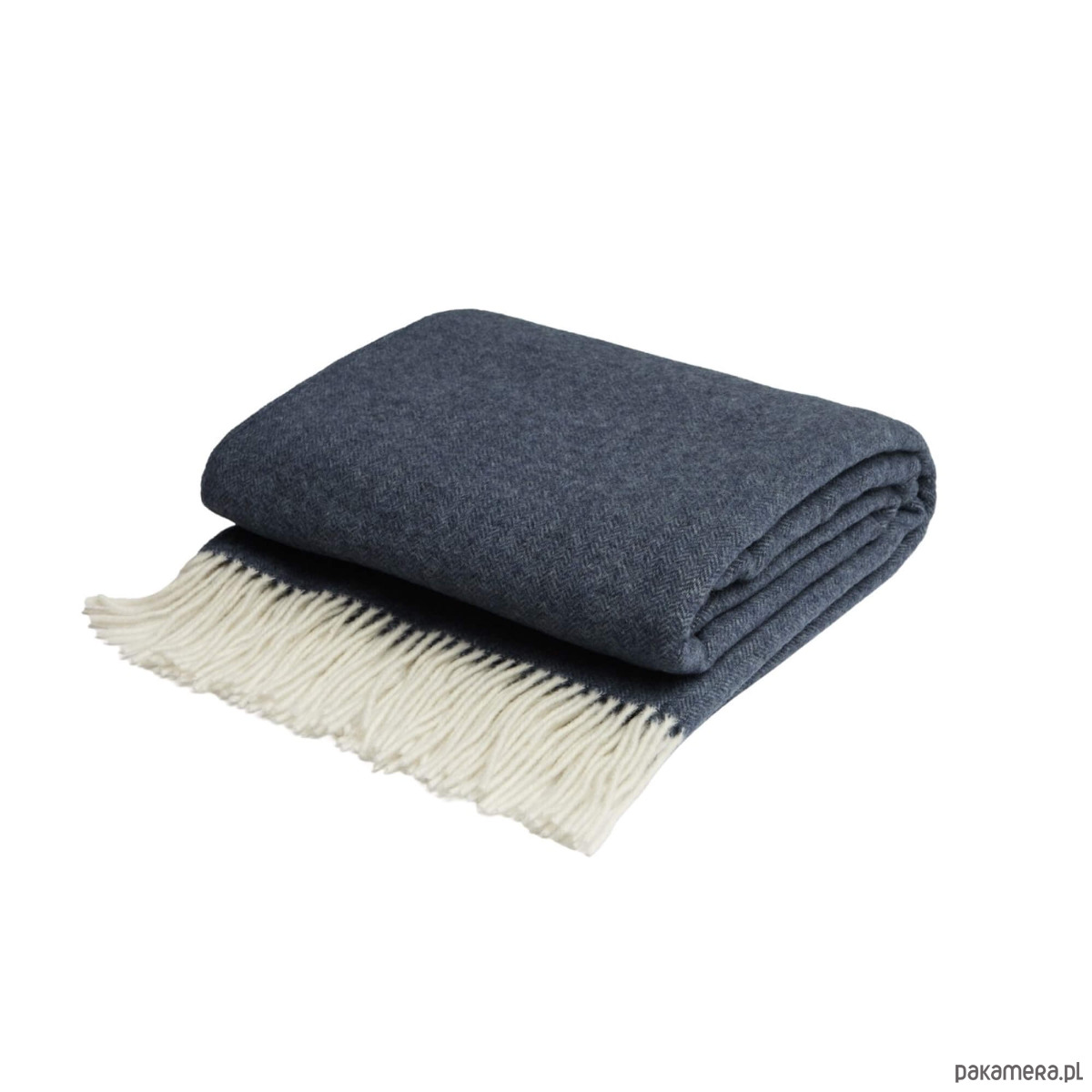 Koc z wełny merino z domieszką kaszmiru granatowy