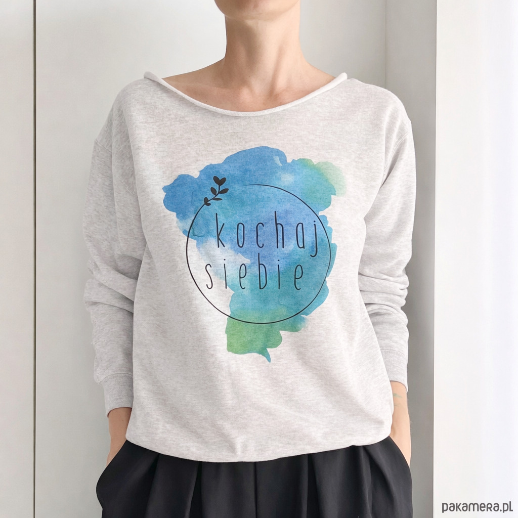 Bluza z akwarelkowym wzorem i napisem. Nadruk „Kochaj siebie” to nie tylko hasło – to codzienne przypomnienie o Twojej wartości.