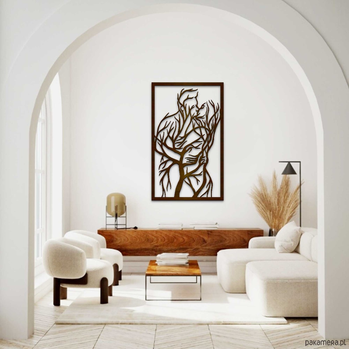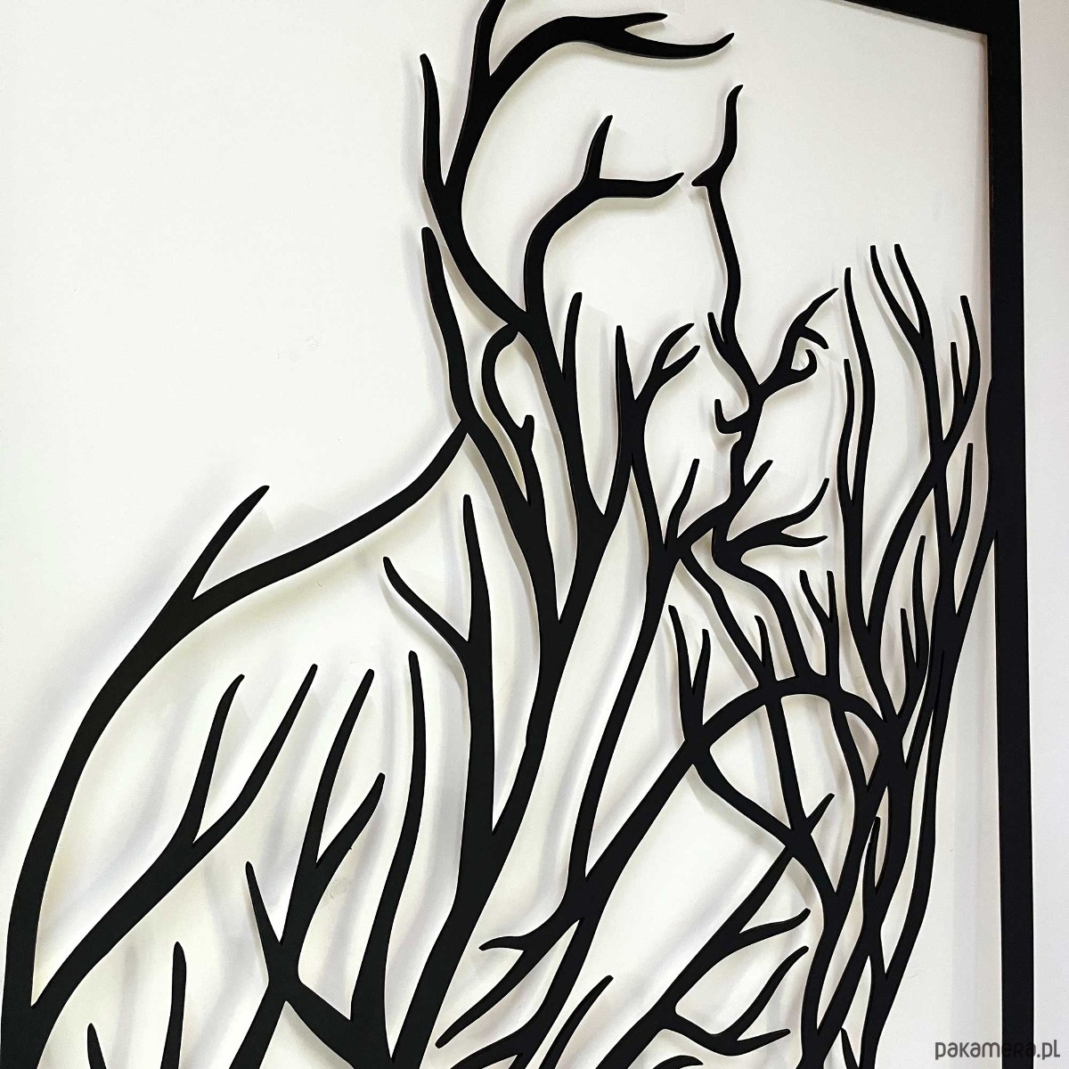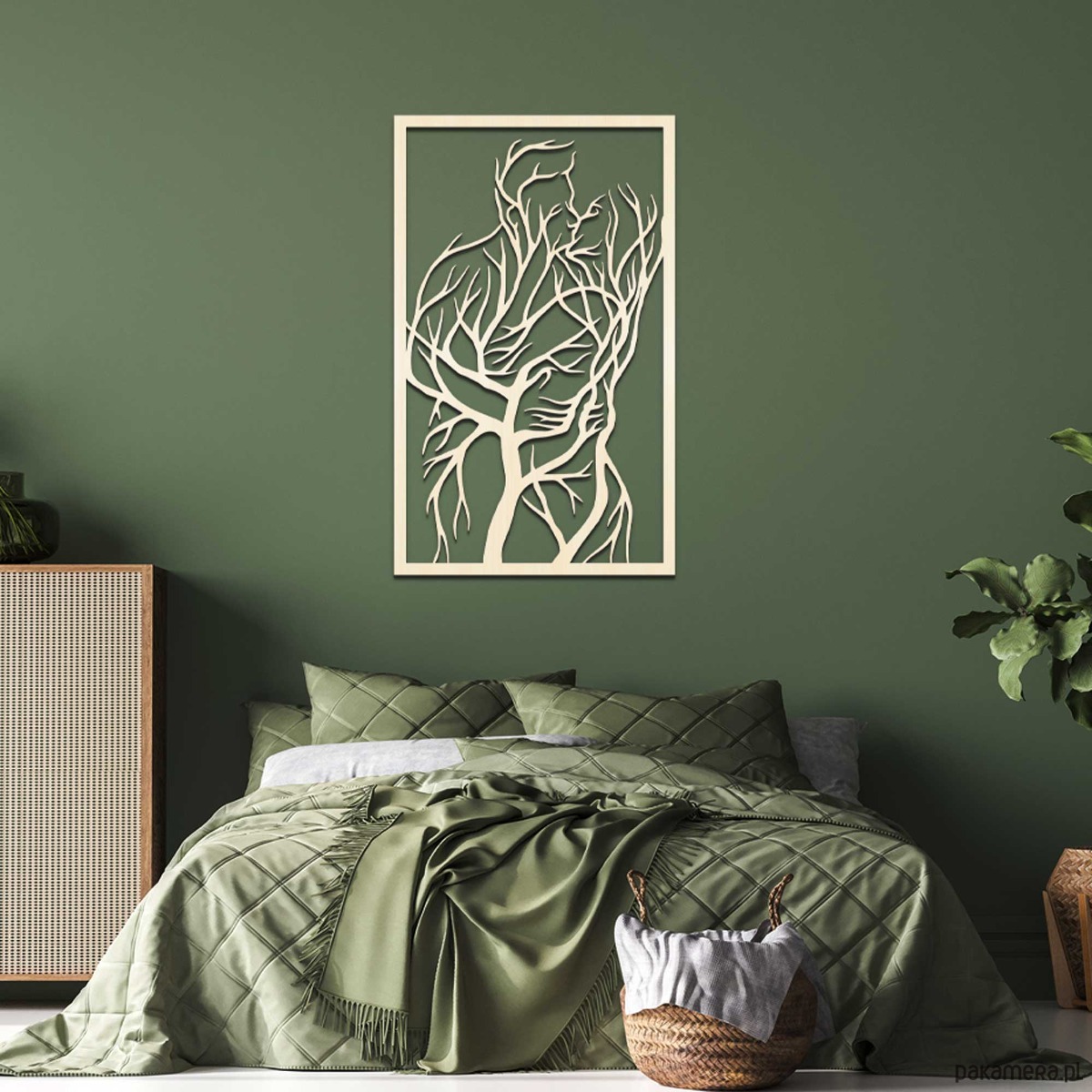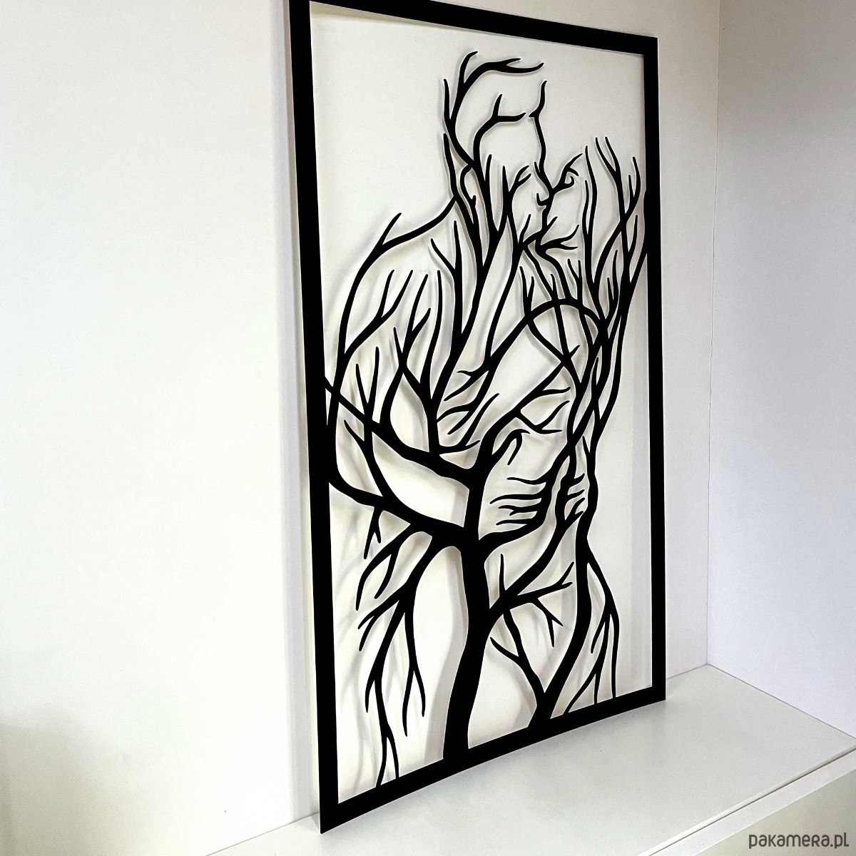 Panel dekoracyjny Kochankowie wykonany ze sklejki drewnianej o grubości 4mm. Bardzo łatwy montaż za pomocą umiejscowionych z tyłu taśmom piankowych. Idealna dekoracja sypialni, a także salonu. Super pomysł na prezent ślubny, rocznicowy itd.
