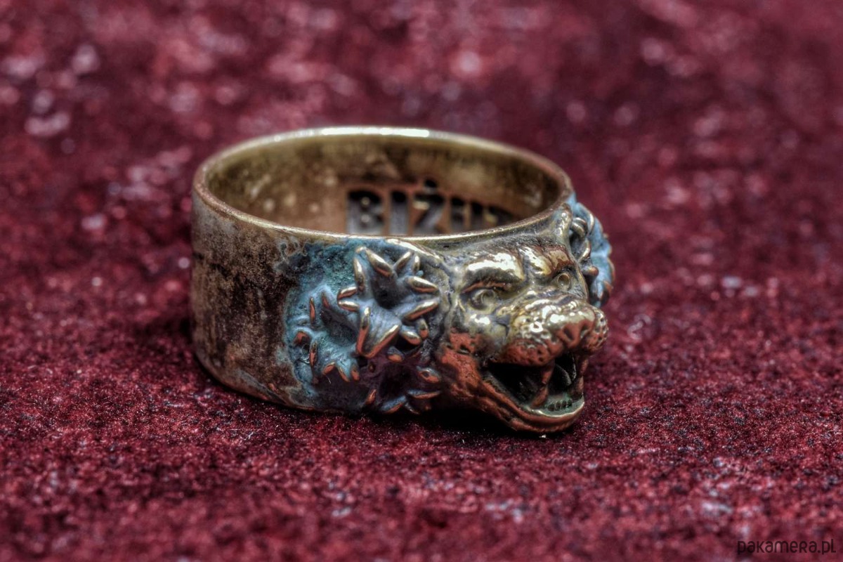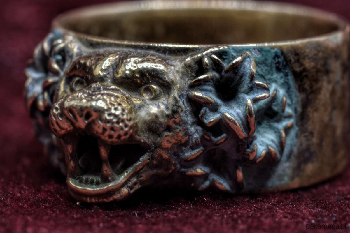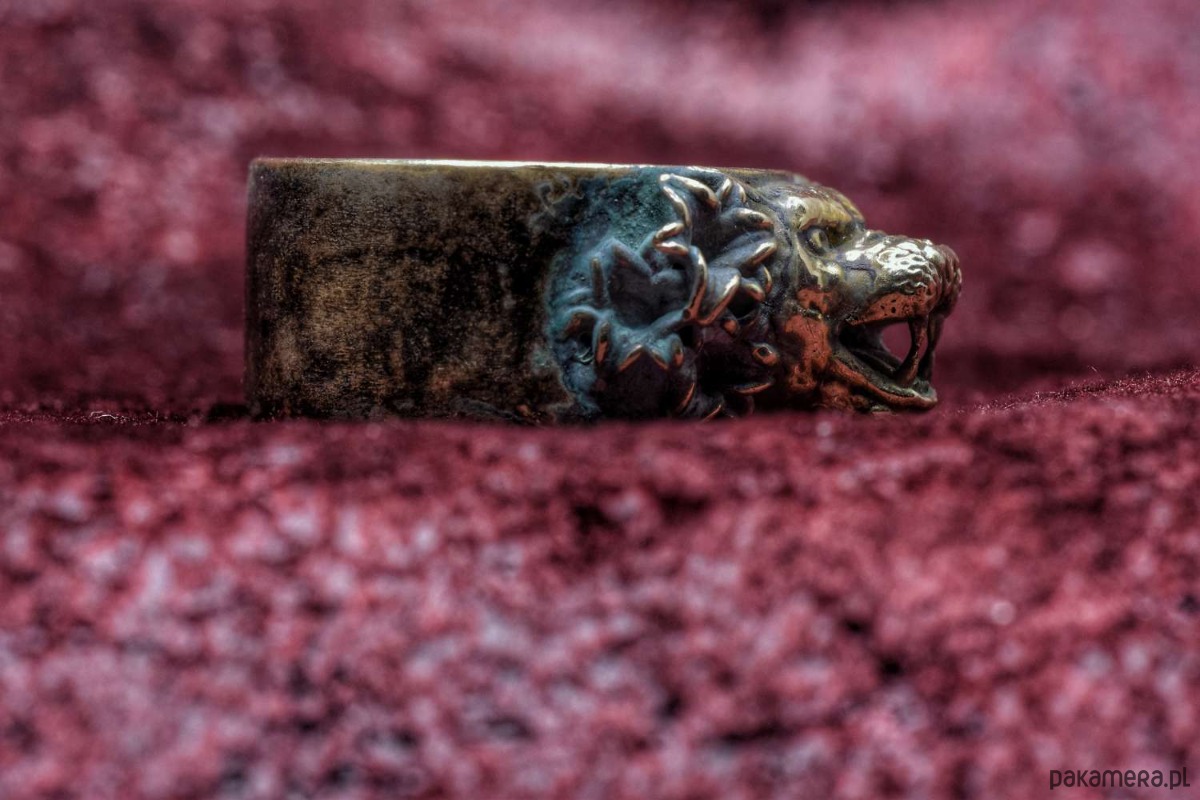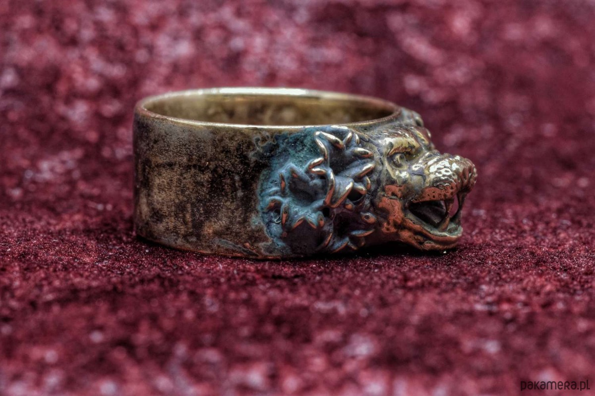 Koci pierścień, który jeszcze nie ma nazwy. Pokryty zieloną patyną. Rozmiar 23, czyli ok. 63mm obwodu.