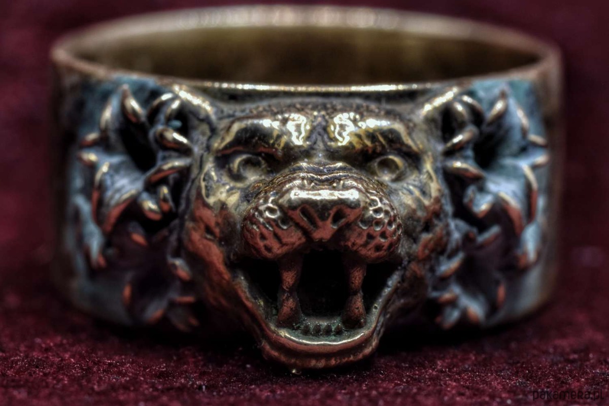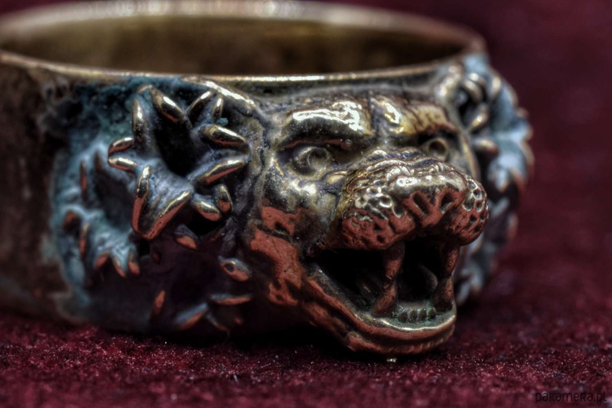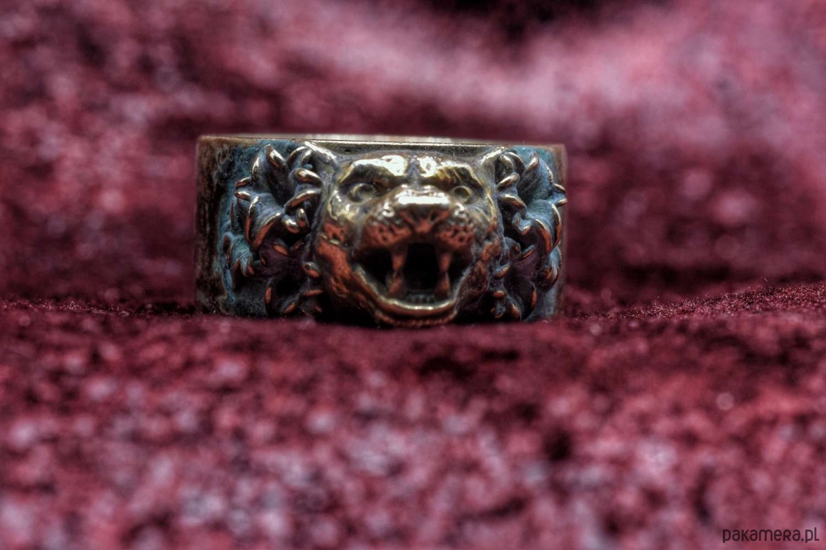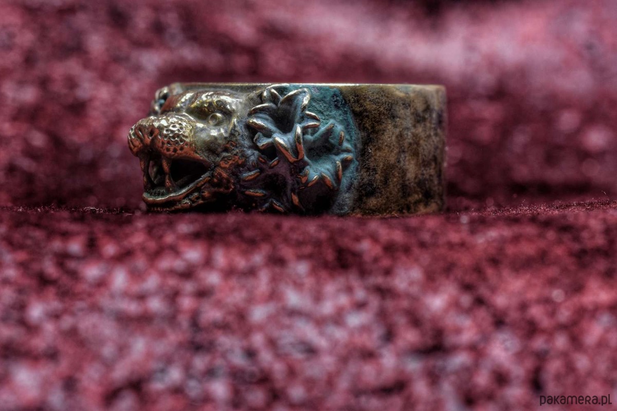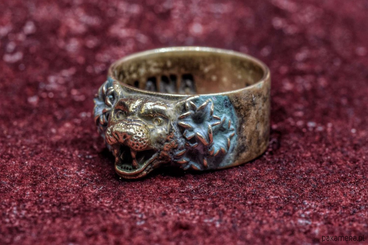 Koci pierścień, który jeszcze nie ma nazwy. Pokryty zieloną patyną. Rozmiar 23, czyli ok. 63mm obwodu.