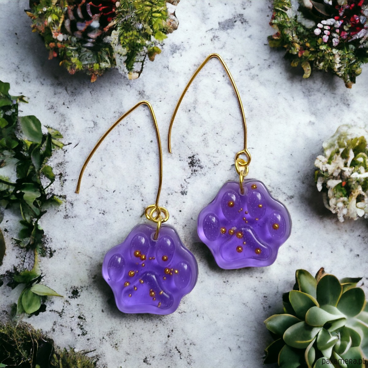 Kocie łapki : UNIKATOWE kolczyki z żywicy : psie łapki