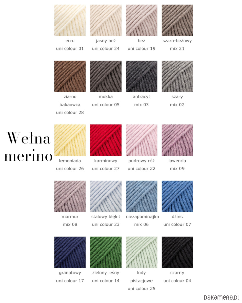 Na zdjęciu prezentowany model na zdjęciach to wełna merino kolor Mokka. Przy zakupie proszę o podanie koloru z wybranej palety, która znajdują się w galerii zdjęć ☺️