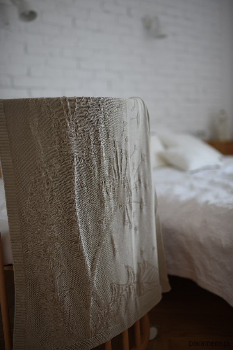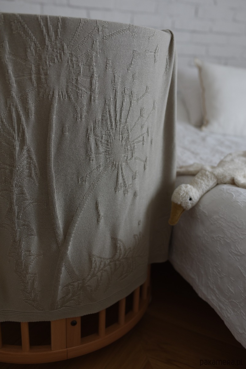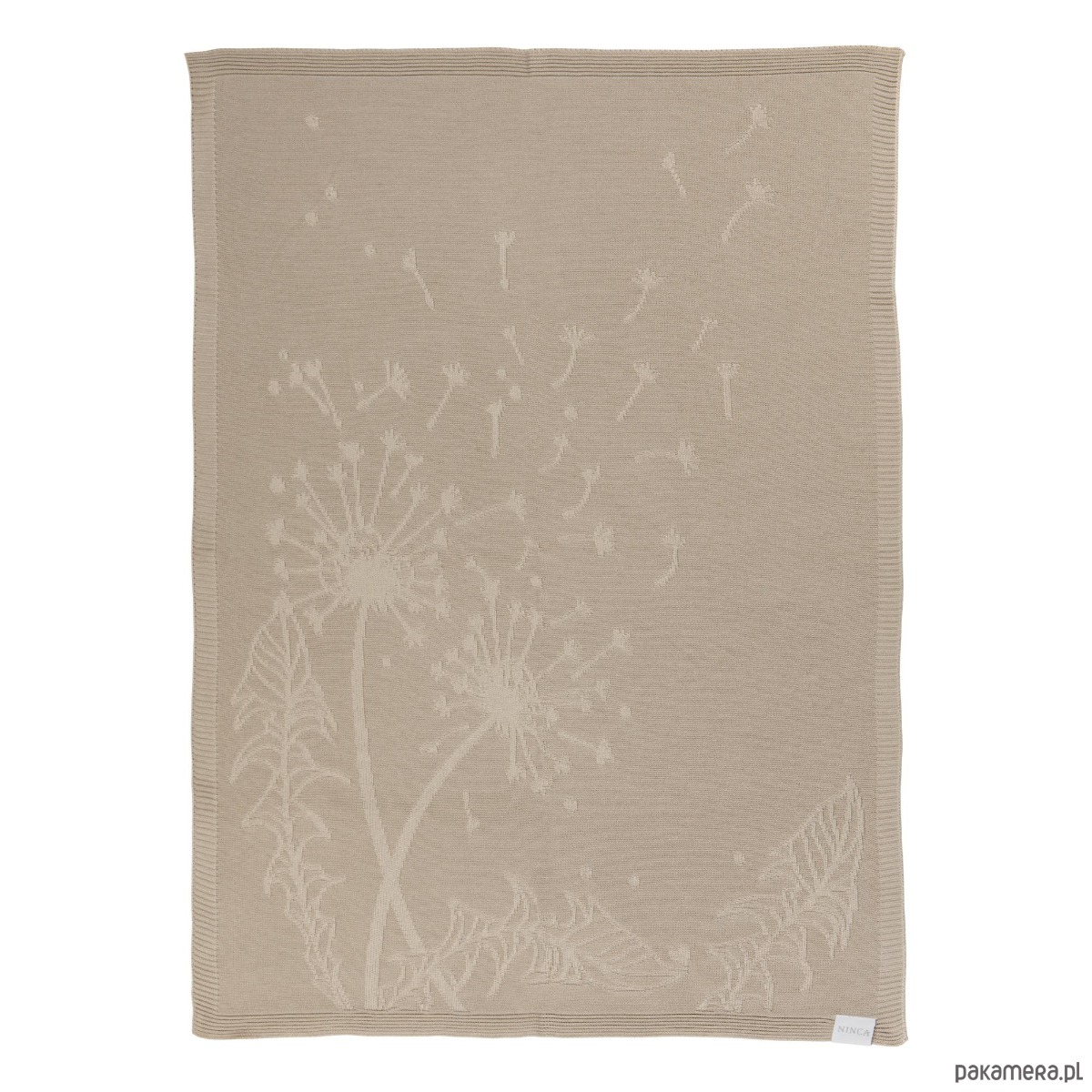 Przepiękny, autorski wzór widniejący na kocyku wzór został zainspirowany unoszonymi przez wiatr dmuchawcami, których widok jest nieodłącznym wspomnieniem z dzieciństwa.