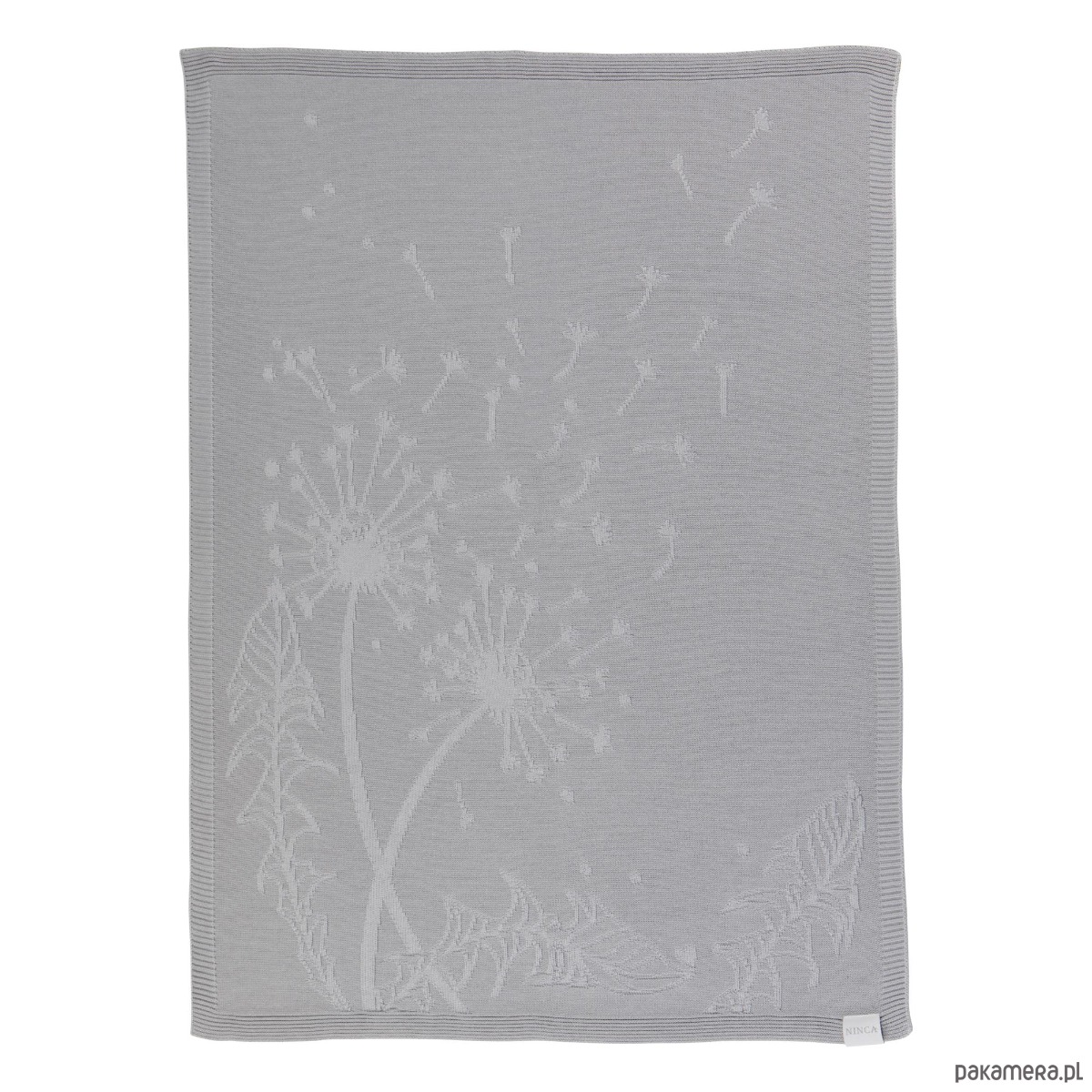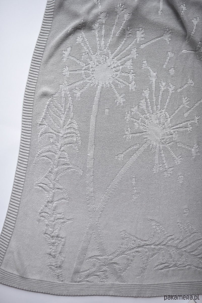 Przepiękny, autorski wzór widniejący na kocyku wzór został zainspirowany unoszonymi przez wiatr dmuchawcami, których widok jest nieodłącznym wspomnieniem z dzieciństwa.