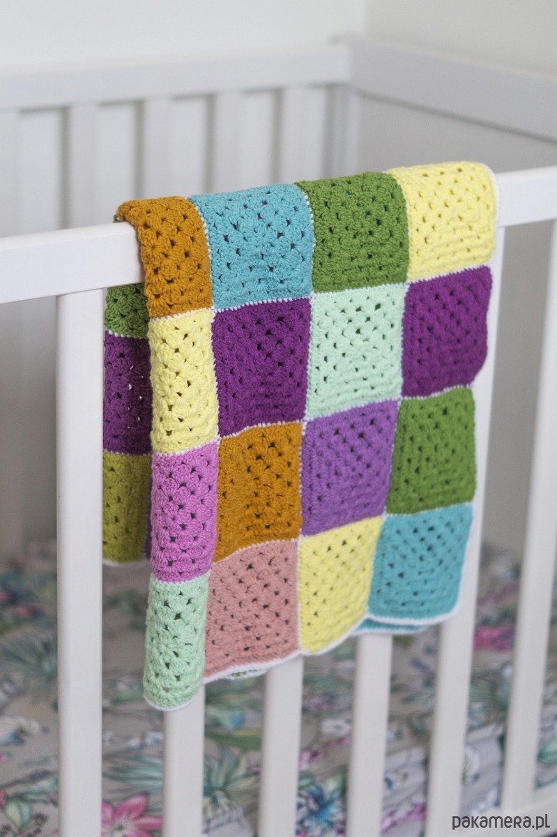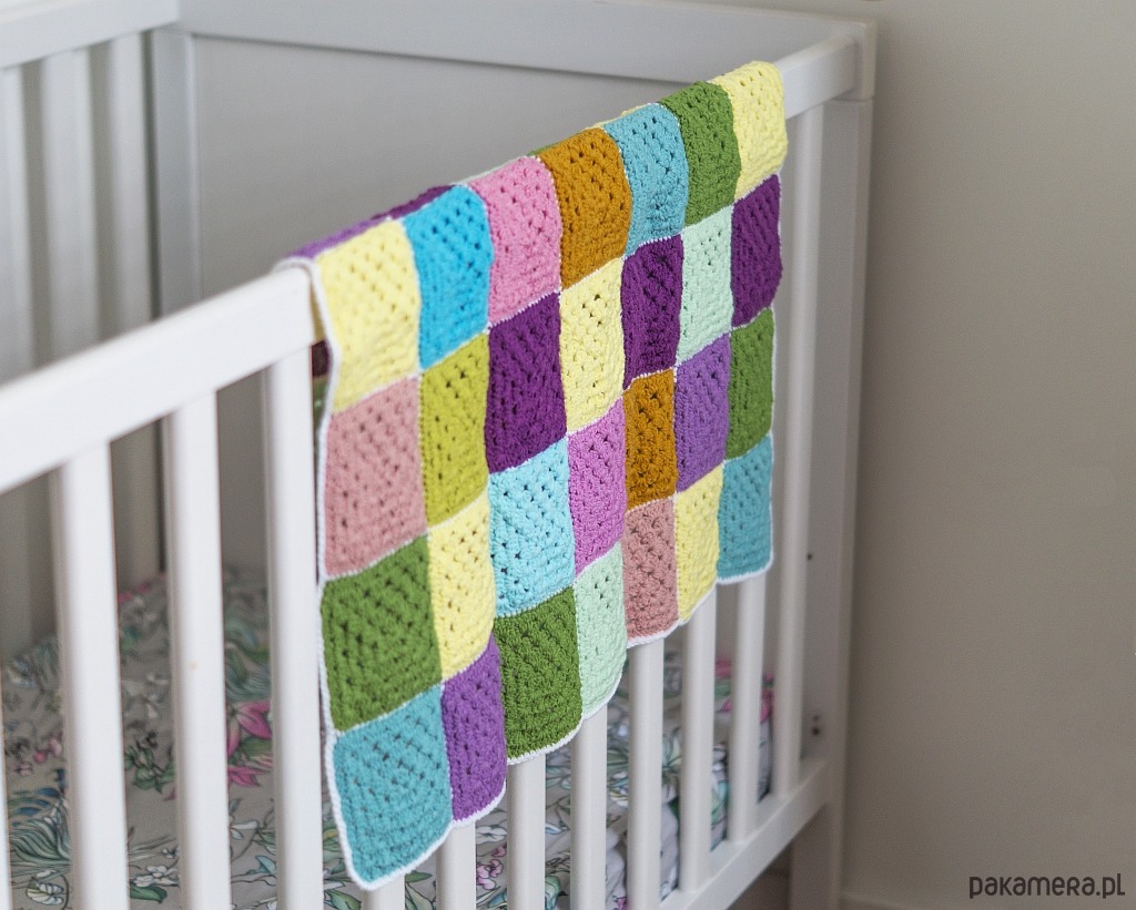 Kocyk wykonany jest z mięciutkiej, bawełnianej włóczki