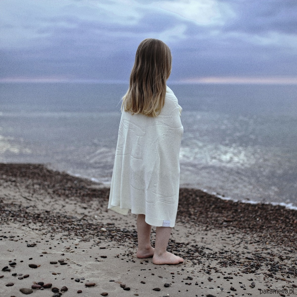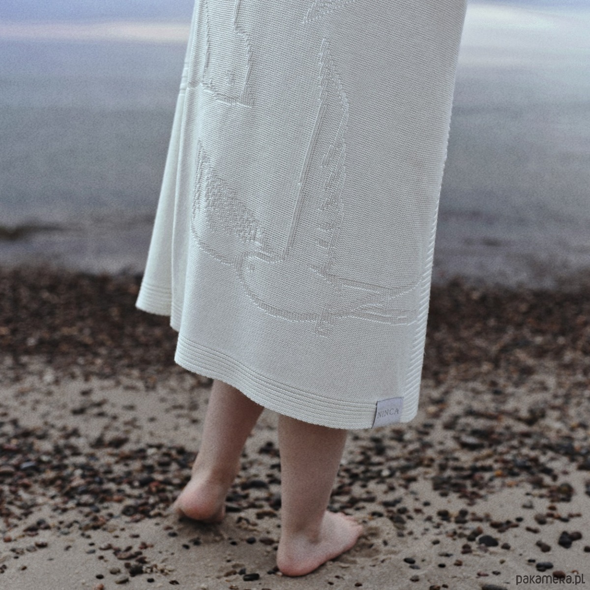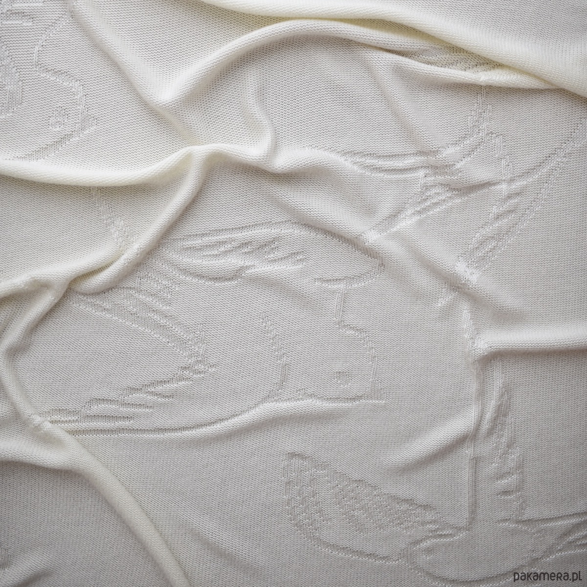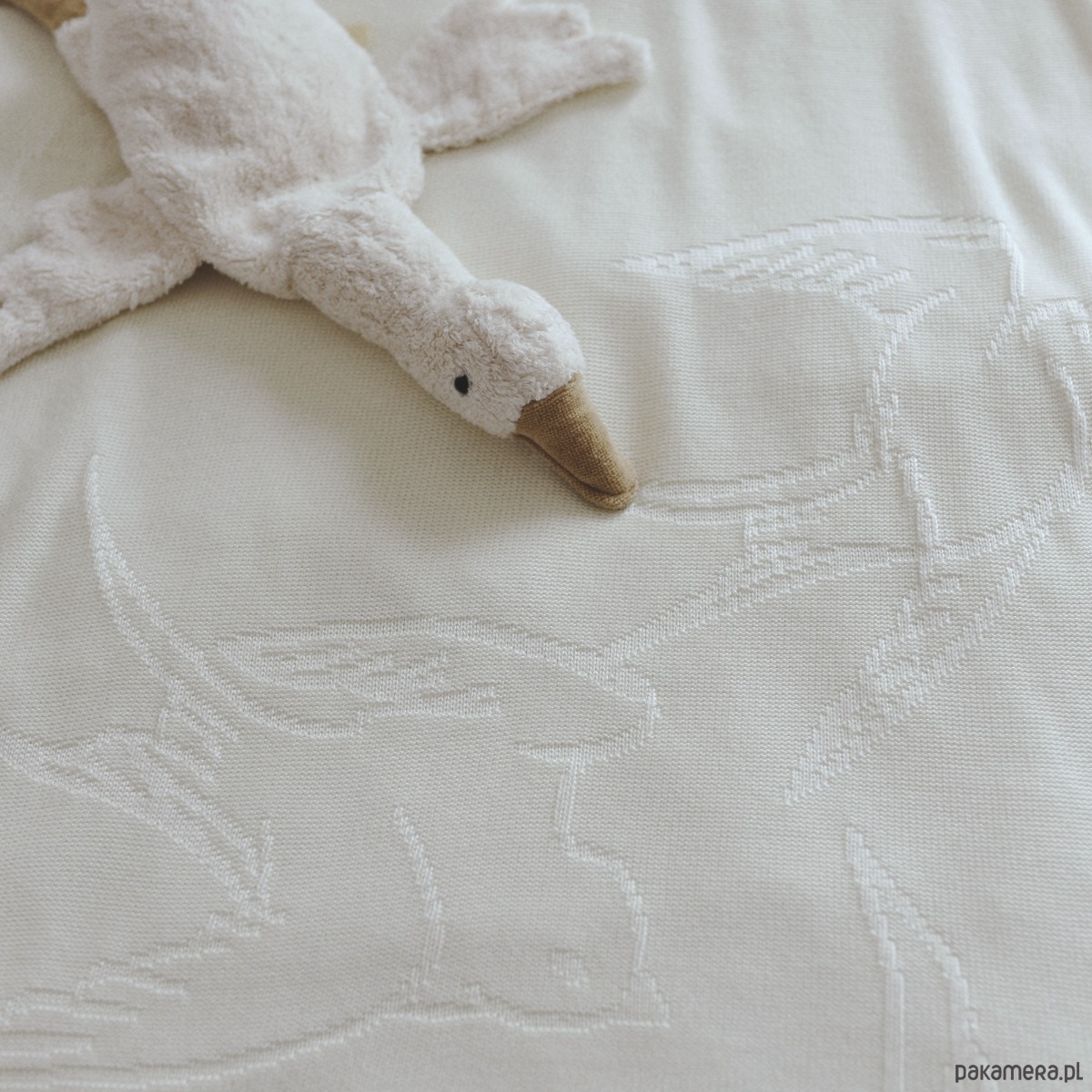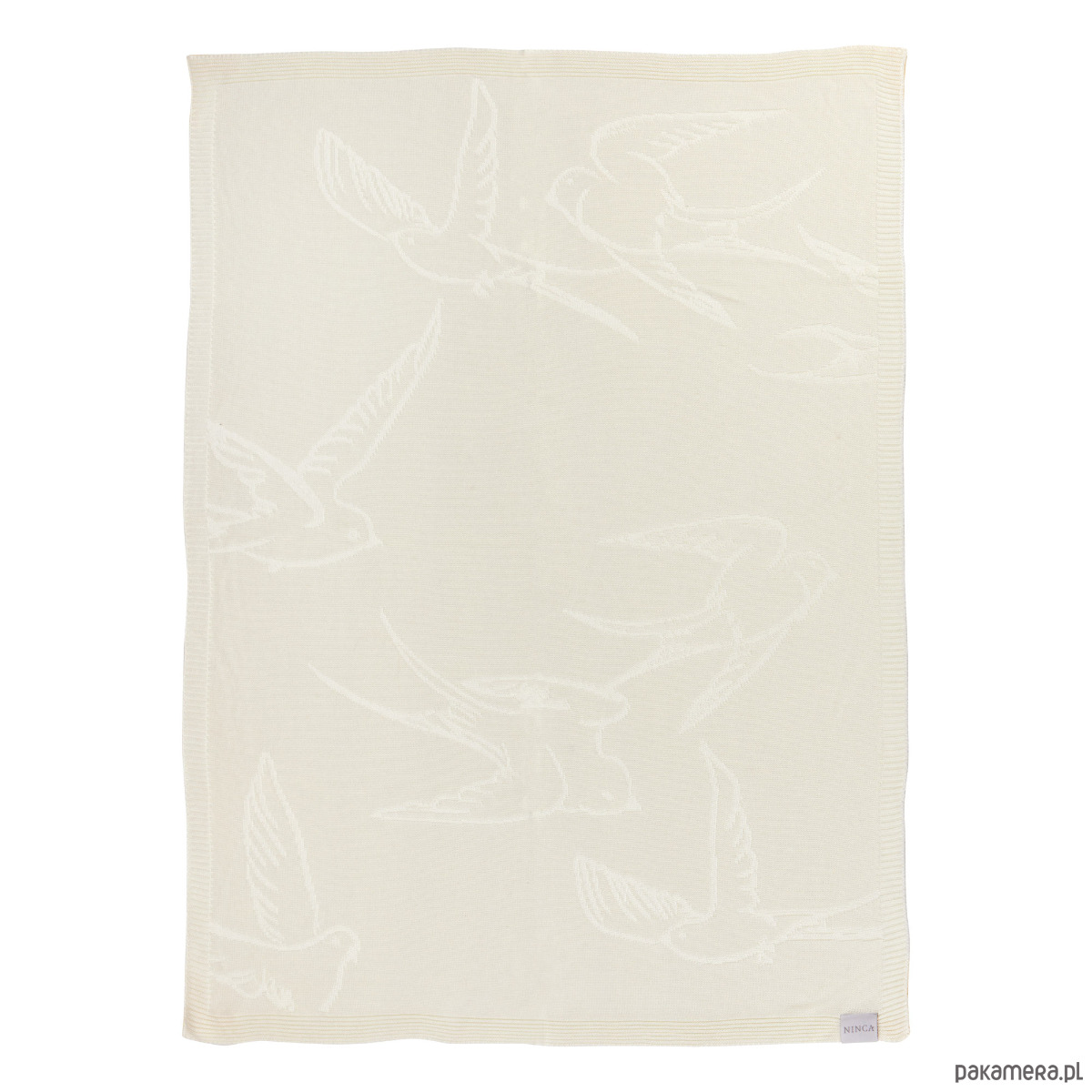 Przepiękny, autorski wzór widniejący na kocyku został zainspirowany widokiem stada jaskółek poruszających się po niebie w zjawiskowym locie.