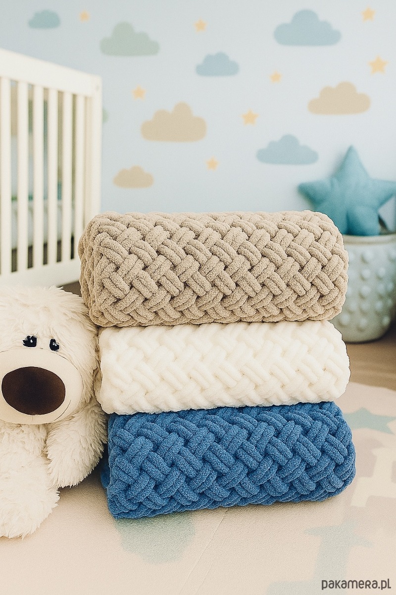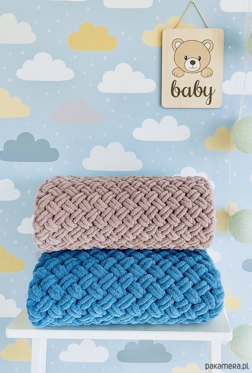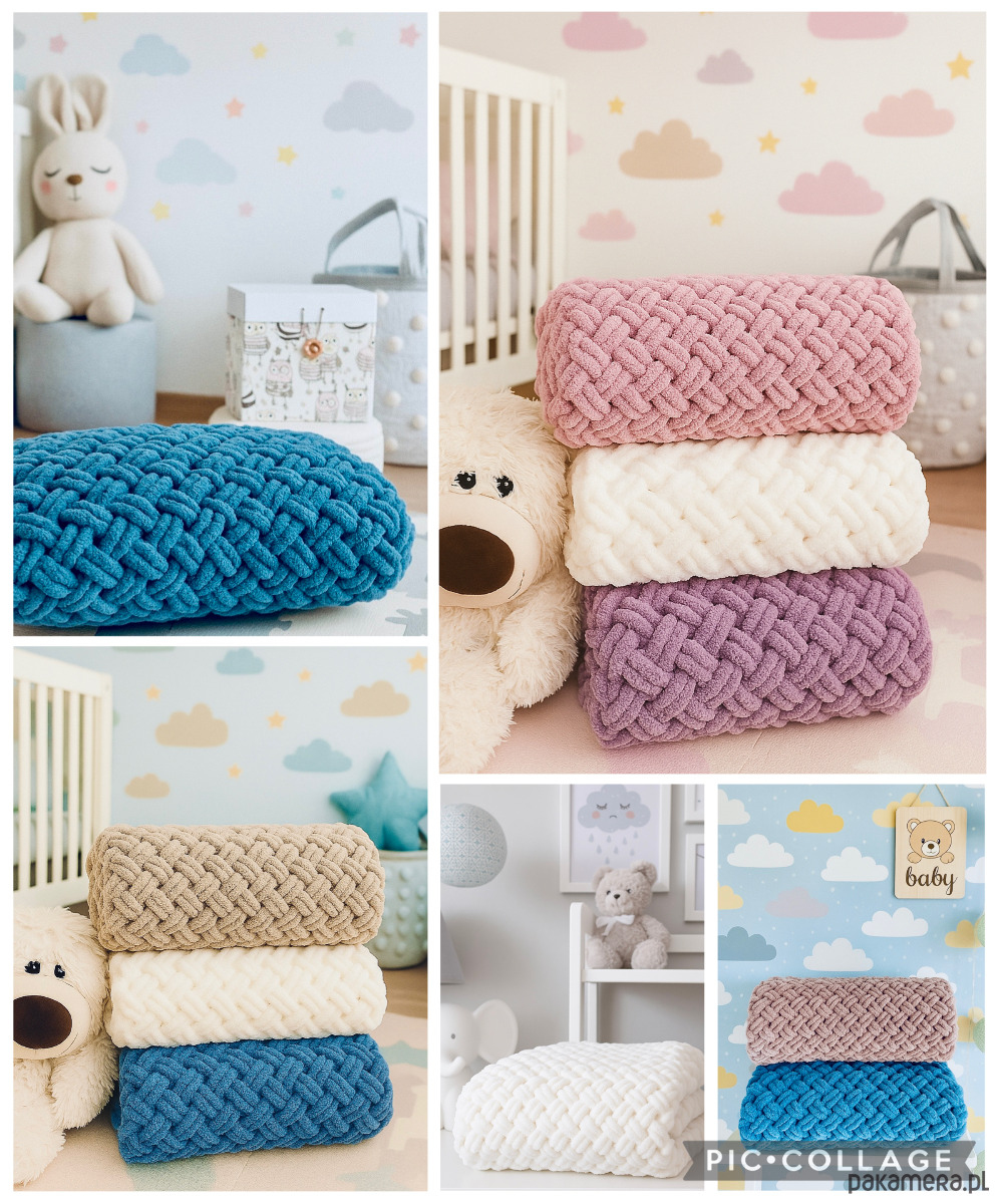 Każdy kocyk wykonany jest ręcznie z puchatej, niezwykle miękkiej włóczki, która jest delikatna dla wrażliwej skóry dziecka. Doskonale sprawdzą się w łóżeczku, wózku czy jako przytulne okrycie w domu.