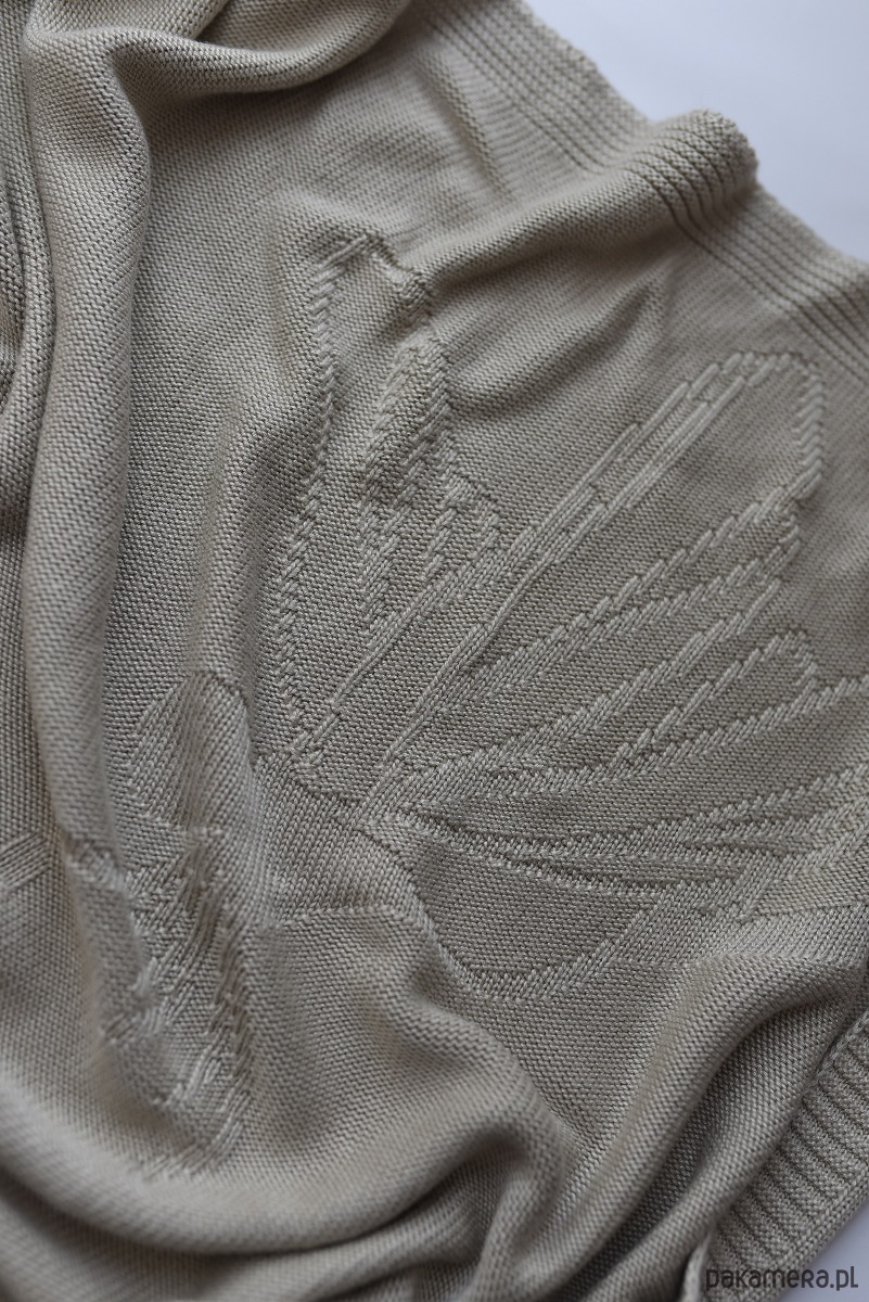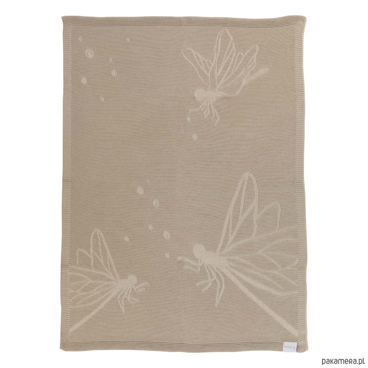 Przepiękny, autorski wzór widniejący na kocyku przedstawia ważki i przywodzi na myśl wspomnienie ciepłych, letnich wieczorów nad stawem, spędzonych na obserwacji bezszelestnego lotu tych owadów.