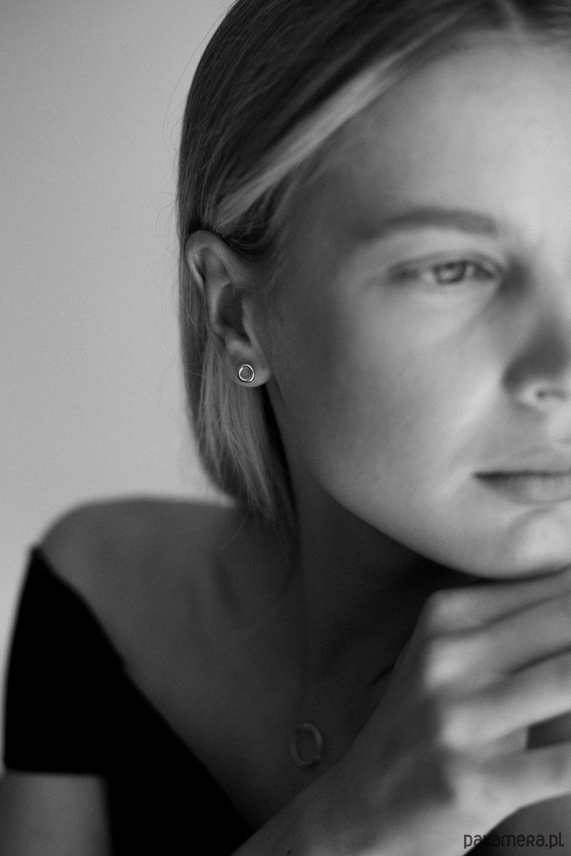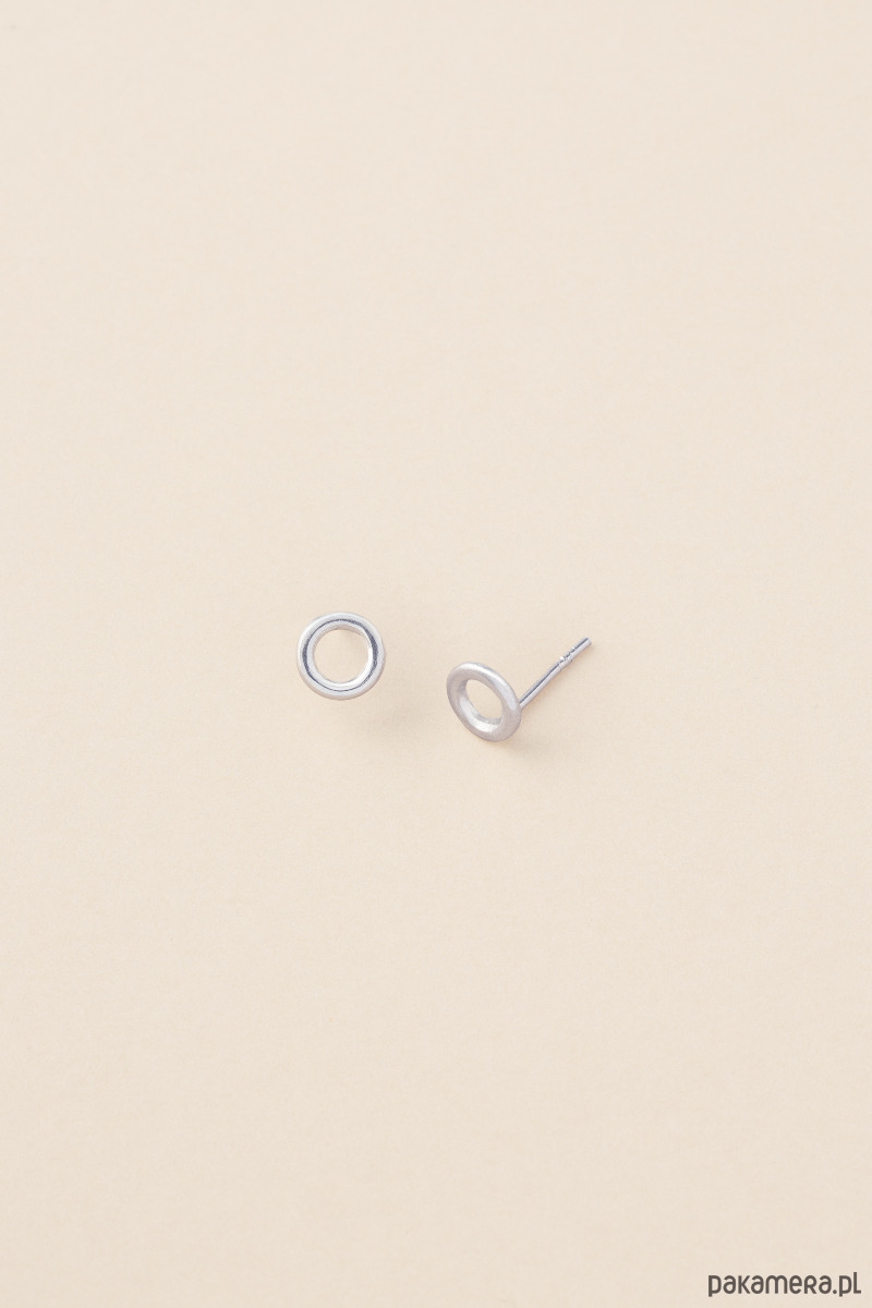 – ręcznie wykonane kolczyki KOŁO MINIMUM ze srebra o średnicy +/- 1,3 cm na sztyft z klasycznym, motylkowym zapięciem; zapięcie nie jest widoczne na zdjęciu