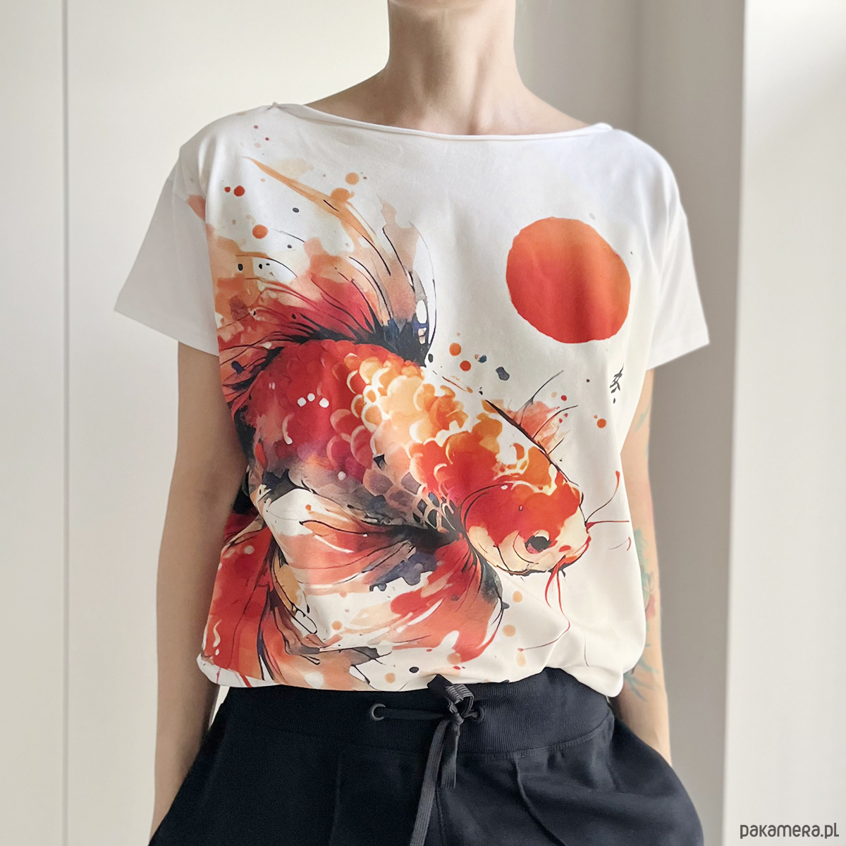Karp koi pomarańczowy w wersji full print. Niezwykły, przyciągający wzrok, wyjątkowy wzór.