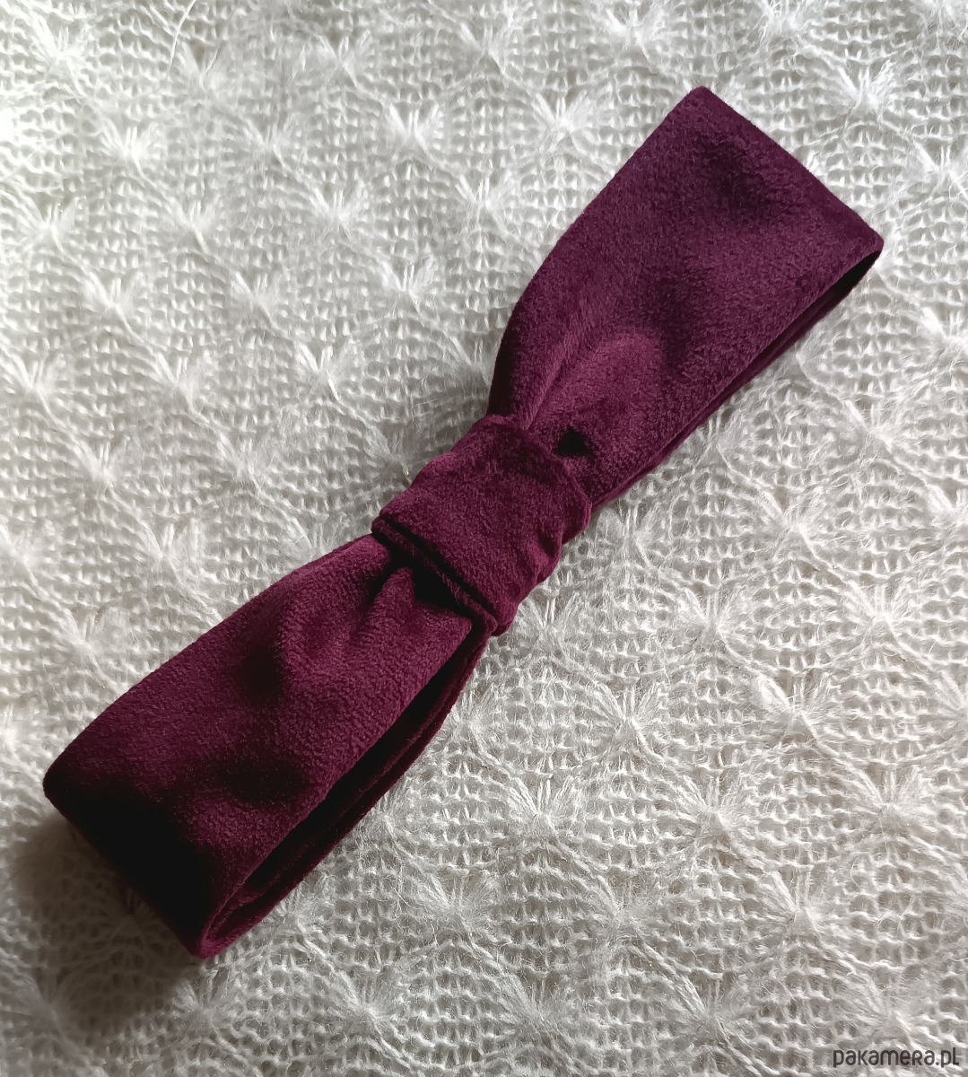 Burgundowa klasyczna kokarda welurowa - Bella - elegancja, która przyciąga spojrzenia.