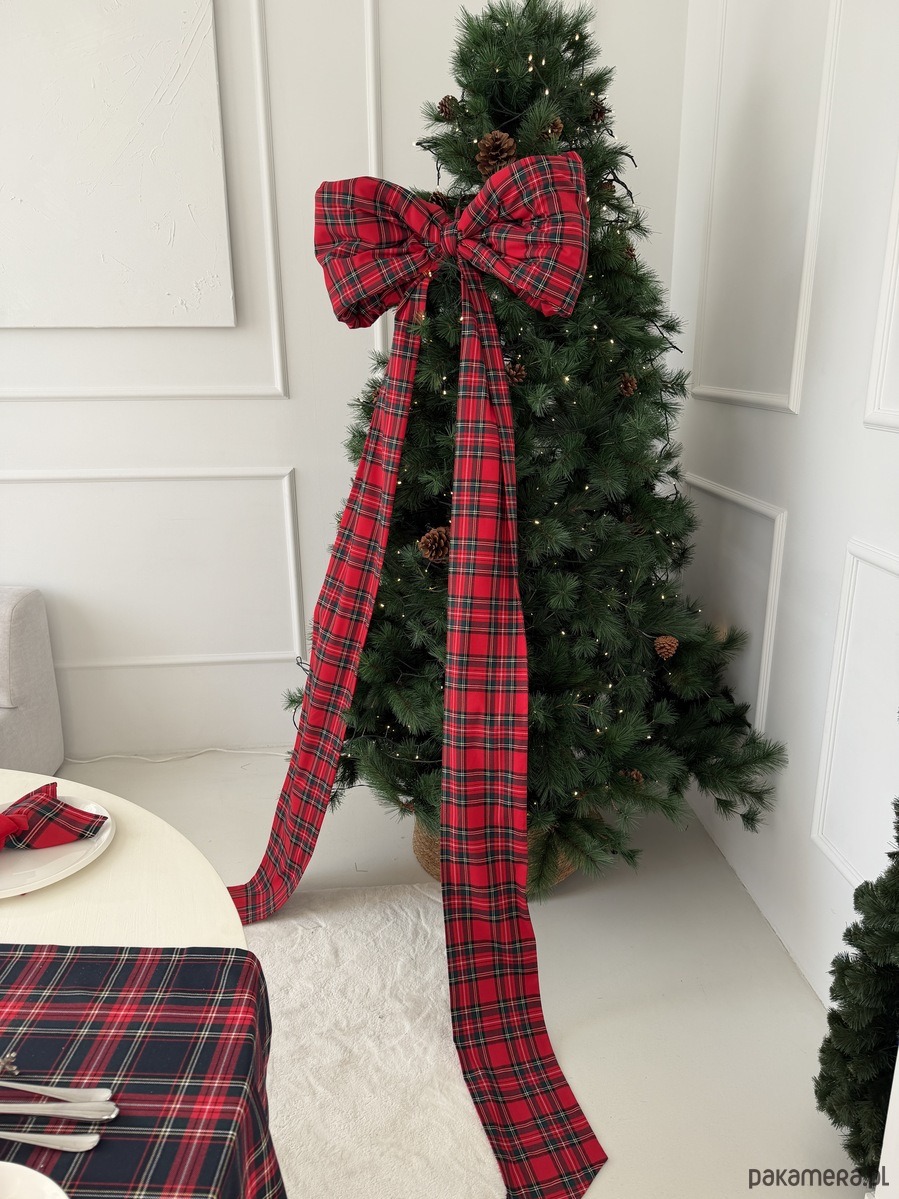 Imponująca kokarda gigant w elegancką zieloną kratę, o wymiarach 190/200 cm. Idealna do nadania wnętrzom wyjątkowego, świątecznego uroku. Jej imponujący rozmiar sprawia, że staje się efektownym akcentem dekoracyjnym na choince, ścianie czy w oknie. Świetnie sprawdzi się również w przestrzeniach komercyjnych, takich jak sklepy, witryny, restauracje czy punkty usługowe. Luksusowy charakter kokardy z pewnością przyciągnie wzrok i stworzy niezapomnianą atmosferę.