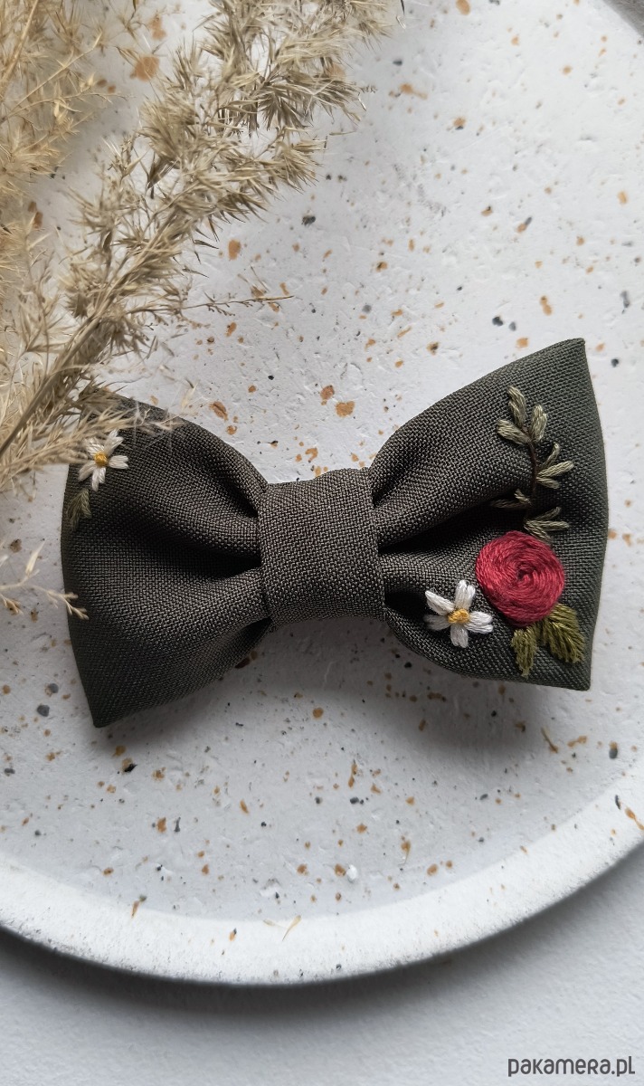 Nasza haftowana kokarda do włosów to unikatowy, ręcznie wykonany dodatek, stworzony z materiałów z drugiego obiegu. Każda kokarda powstaje z dbałością o najmniejszy detal, dzięki czemu jest niepowtarzalna i jedyna w swoim rodzaju.