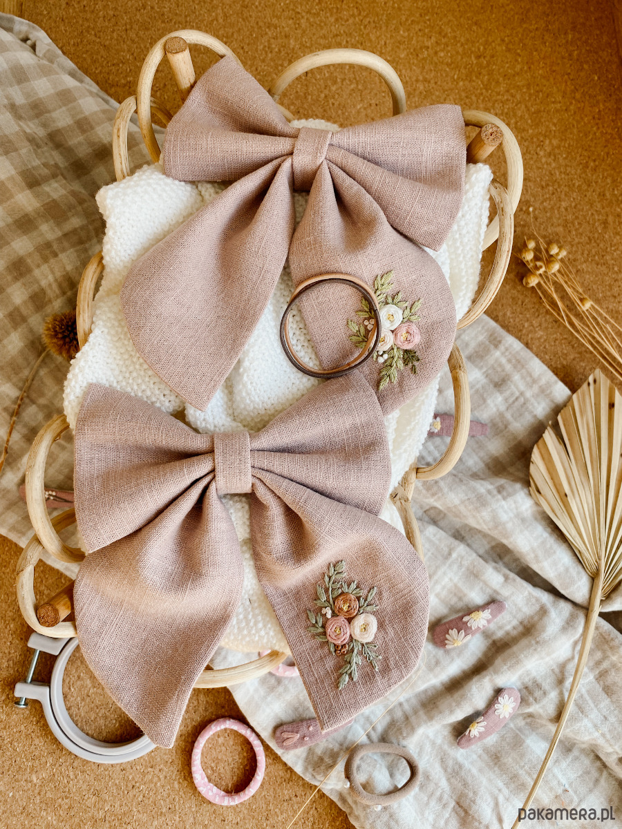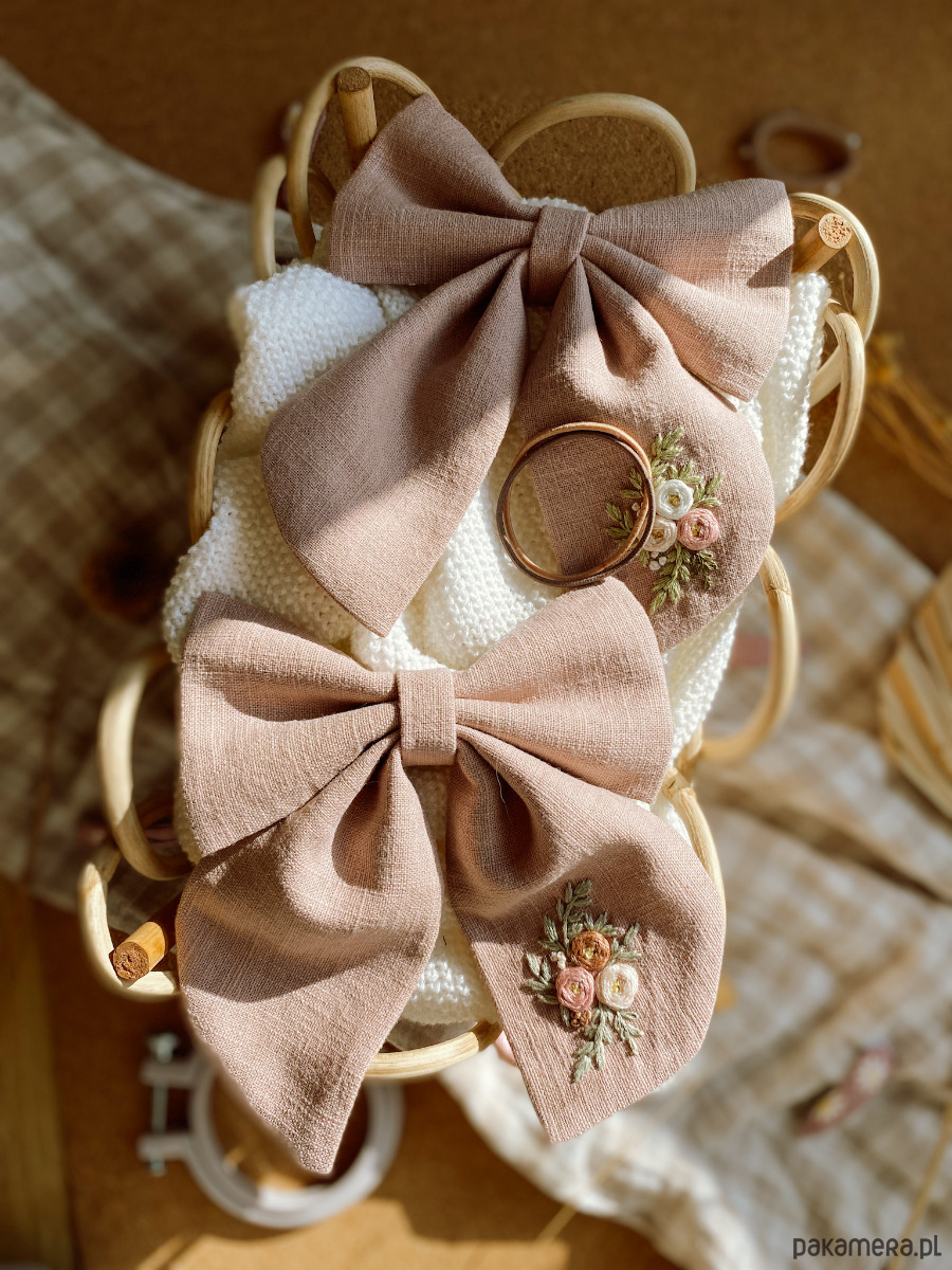 Kokardki to elegancka i urocza ozdoba zarówno dla kobiet jak i małych dziewczynek. Wykonane w 100% z lnianej tkaniny pięknie się prezentują i zapewniają wytrzymałość. Len jest miękki, nie uczula i wykazuje działanie antybakteryjne.