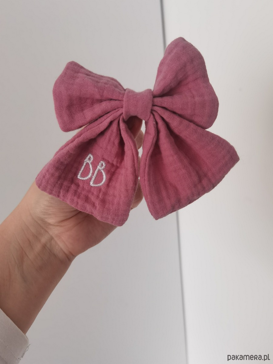 Kokardka do włosów z wyhaftowanym imieniem, inicjałami, literką imienia lub innym dowolny napisem, obrazkiem.
