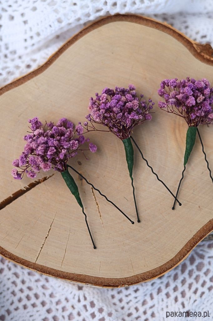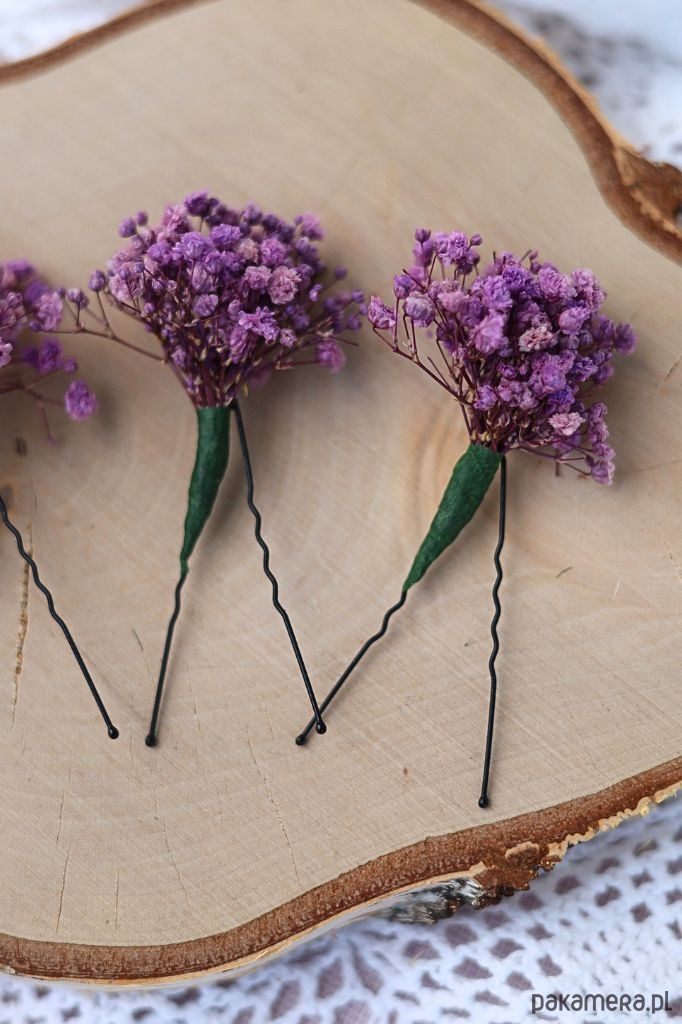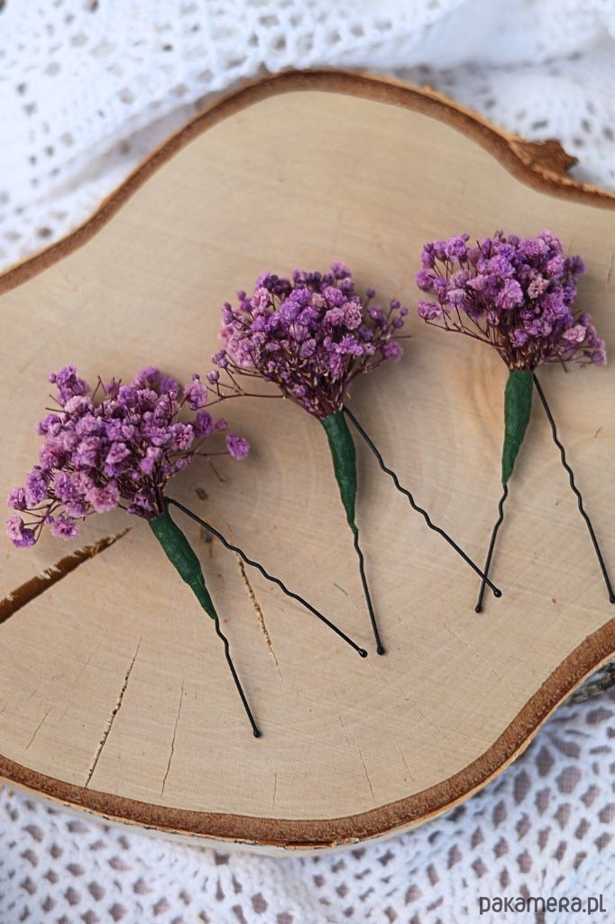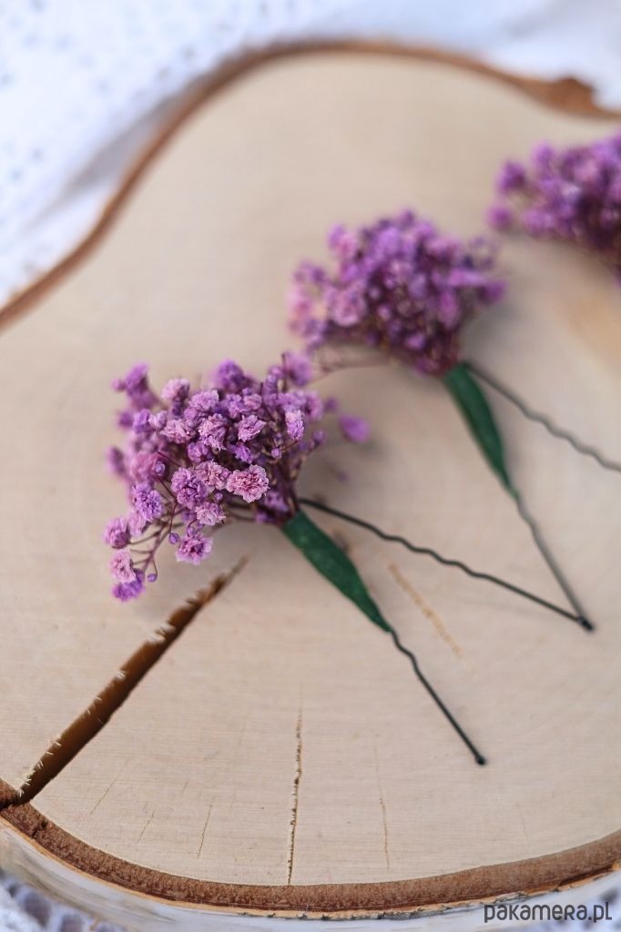 Kokówki ślubne z stabilizowaną gipsówką w odcieniu fioletu, to perfekcyjna ozdoba do włosów na ten wyjątkowy dzień. Wykonane z najwyższej jakości stabilizowanych kwiatów, wsuwki zachwycają naturalnym wyglądem i trwałością.