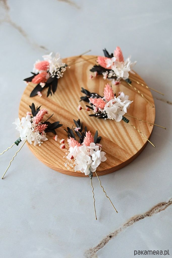 Dzięki swojej uniwersalności, kokówki mogą być używane jako samodzielna ozdoba, lub stanowić uzupełnienie do wianka czy grzebyka, tworząc spójną i elegancką stylizację ślubną.