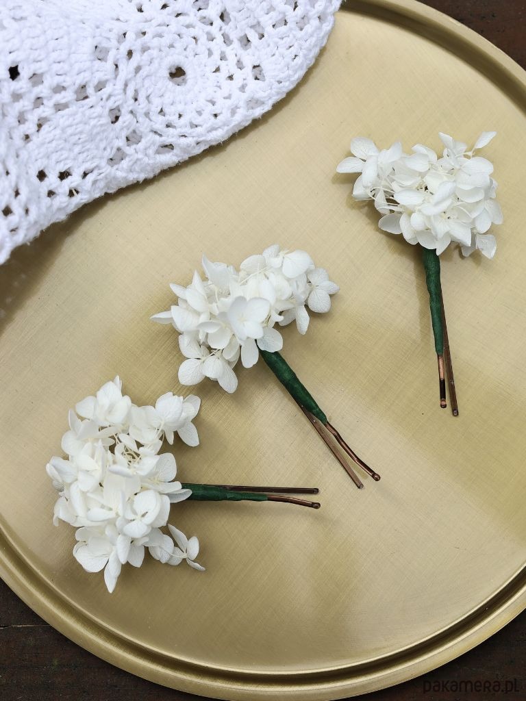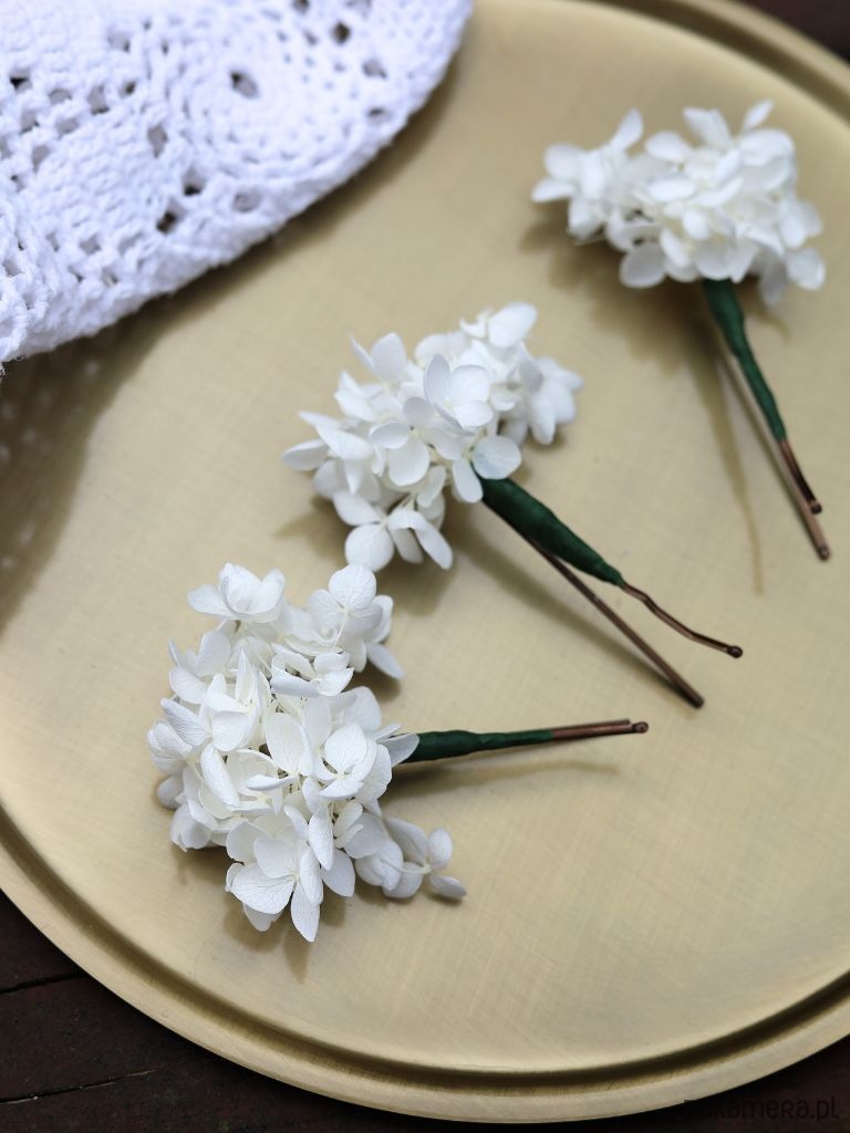 Kokówki ślubne z stabilizowaną hortensją to perfekcyjna ozdoba do włosów na ten wyjątkowy dzień. Wykonane z najwyższej jakości stabilizowanej hortensji, wsuwki zachwycają naturalnym wyglądem i trwałością.