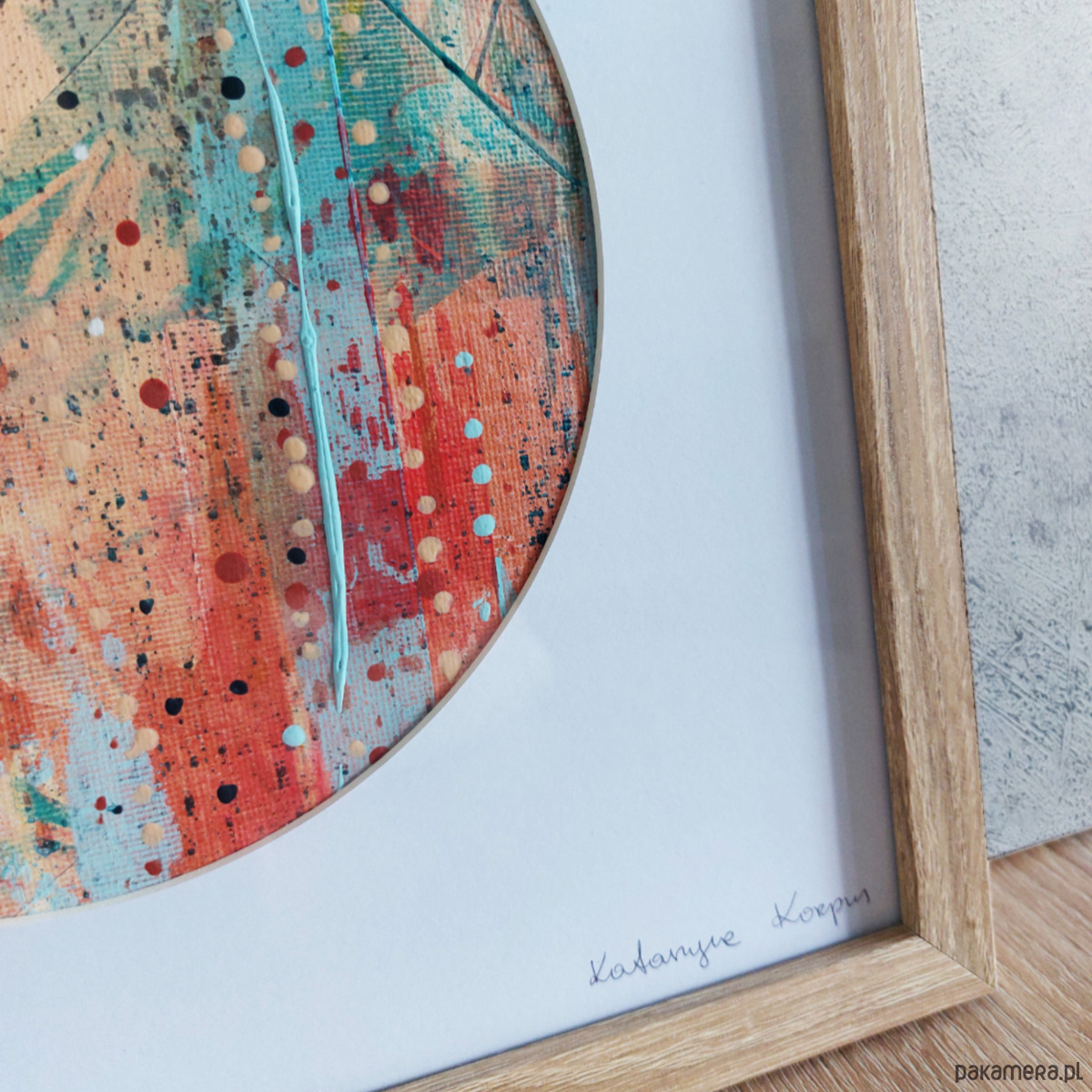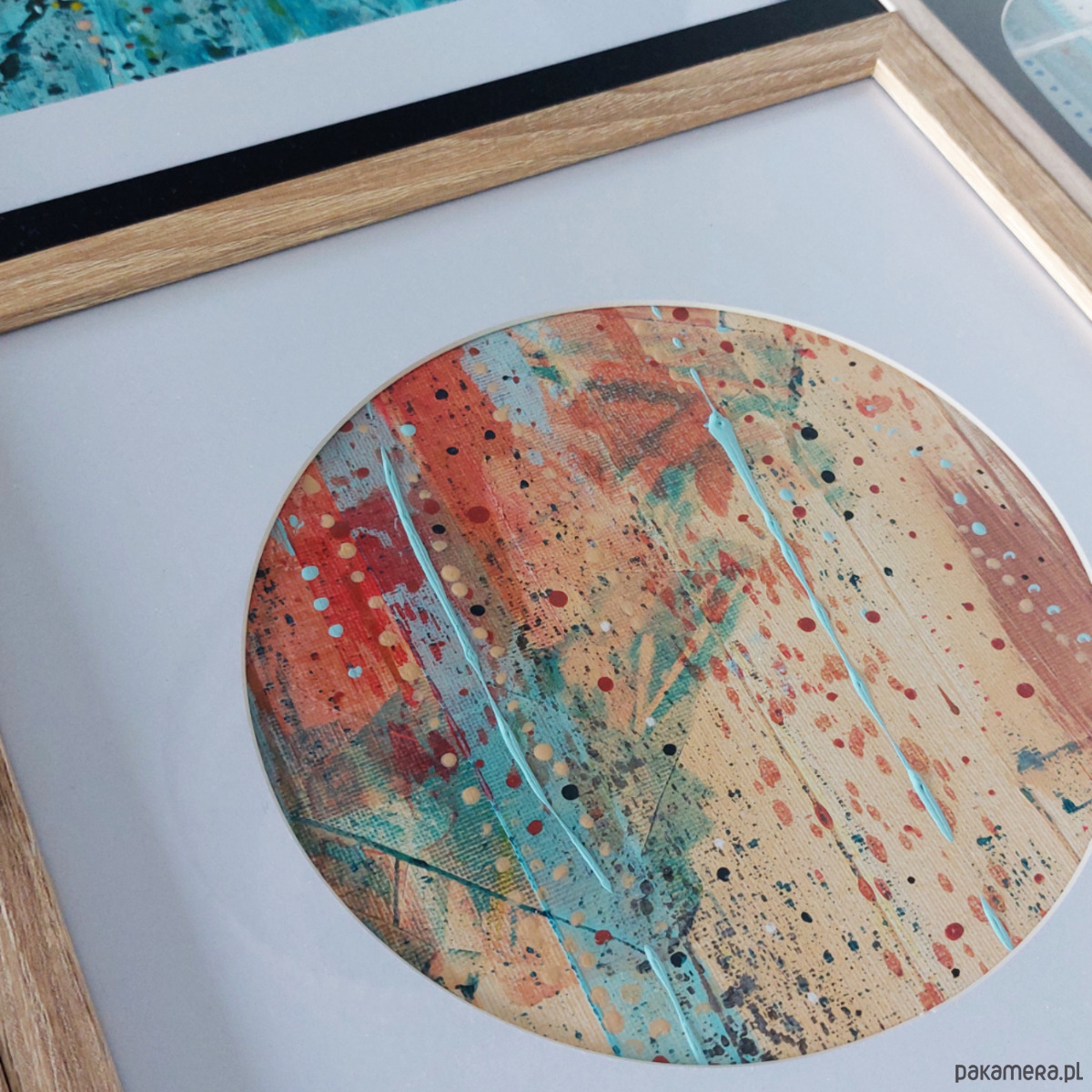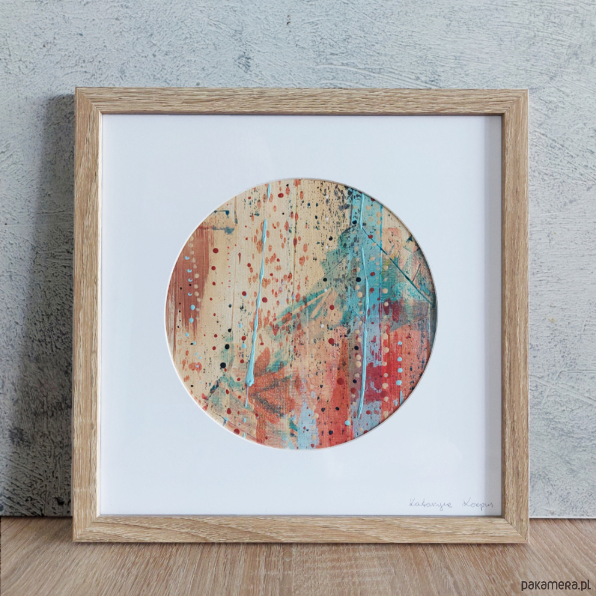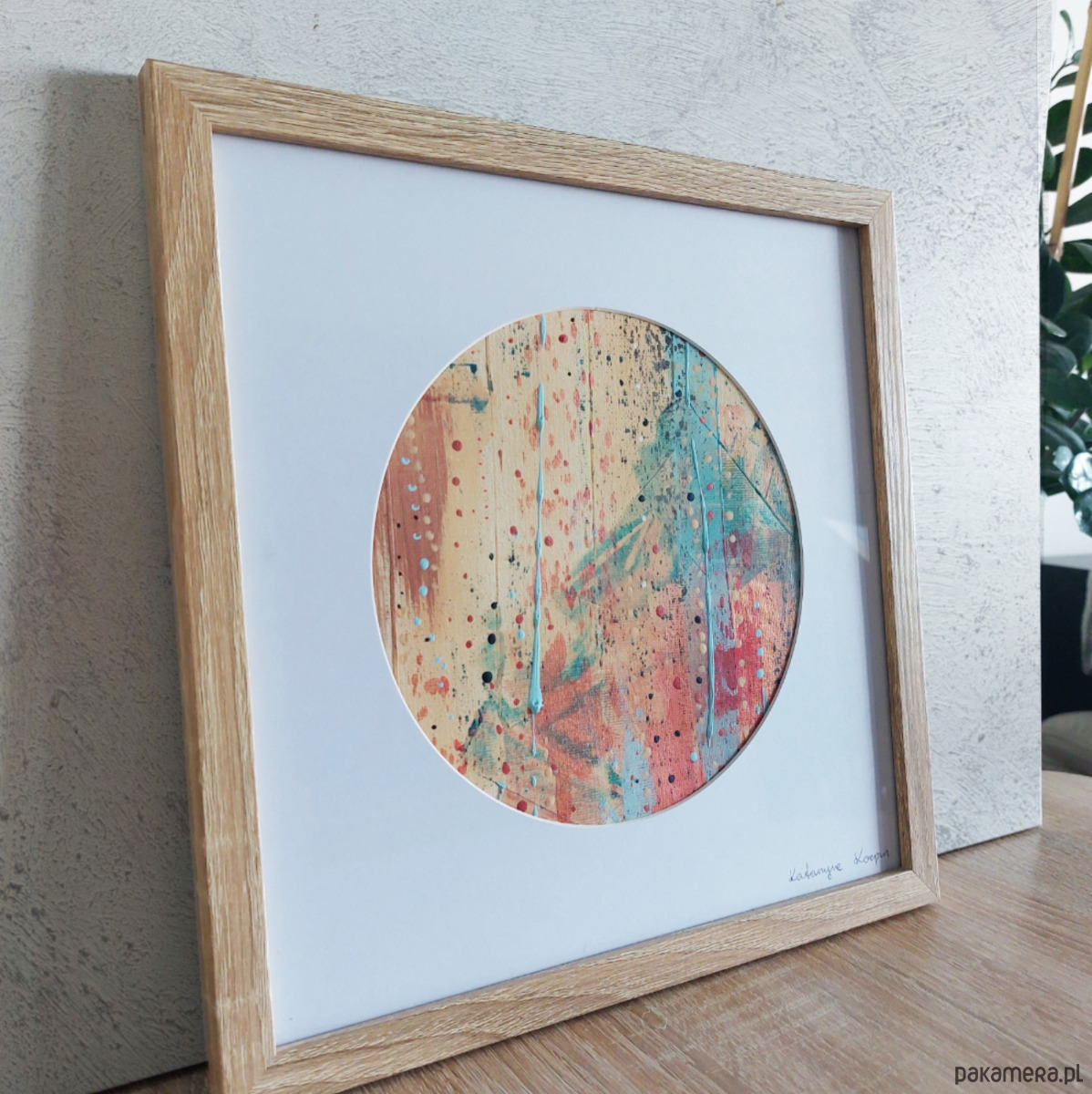 KOKTAJL to ciepła, pełna równowagi abstrakcja ręcznie malowana na płótnie. Oprawiona jest w ramkę w kolorze naturalnego drewna oraz białe passepartout. Będzie świetnie wyglądał we wnętrzach nowoczesnych, drewnianych, boho czy loftowych, a także na bieli, cegle czy betonie. To dodatek, który wniesie do Twojego domu kawał pozytywnej, otulającej energii i długo będzie cieszył oko i serce. To także dobry pomysł na prezent dla kogoś, komu dobrze życzysz :)