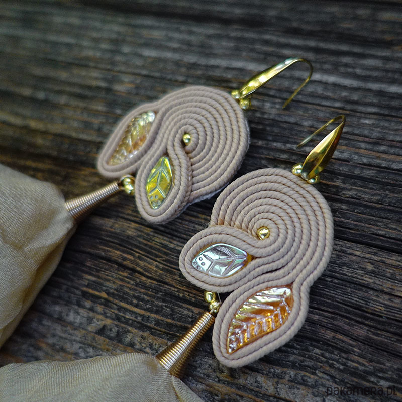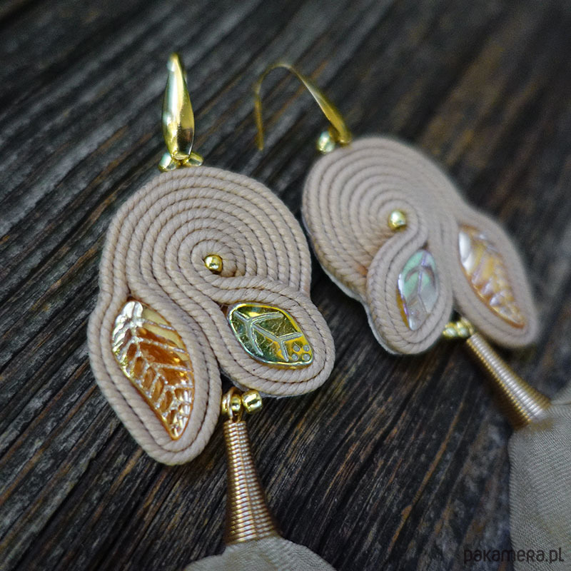 Kolczyki wykonane są metodą haftu soutache. Kolczyki są lekkie i przyciągające wzrok.