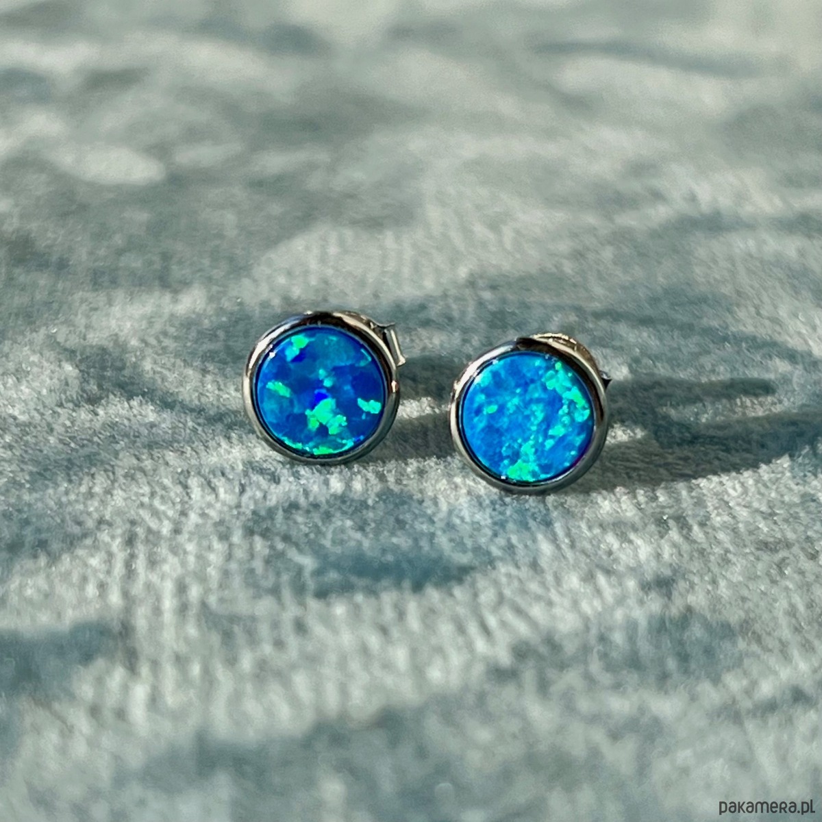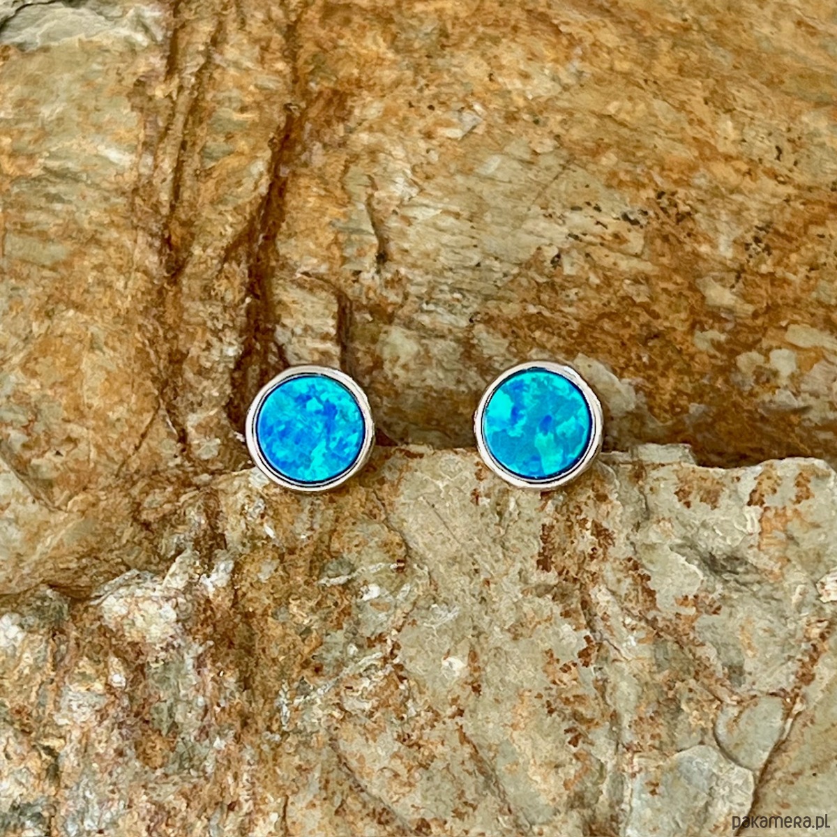 Koła, kółka kolczyki z opalem rekonstruowanym srebro pr. 925 na prezent.