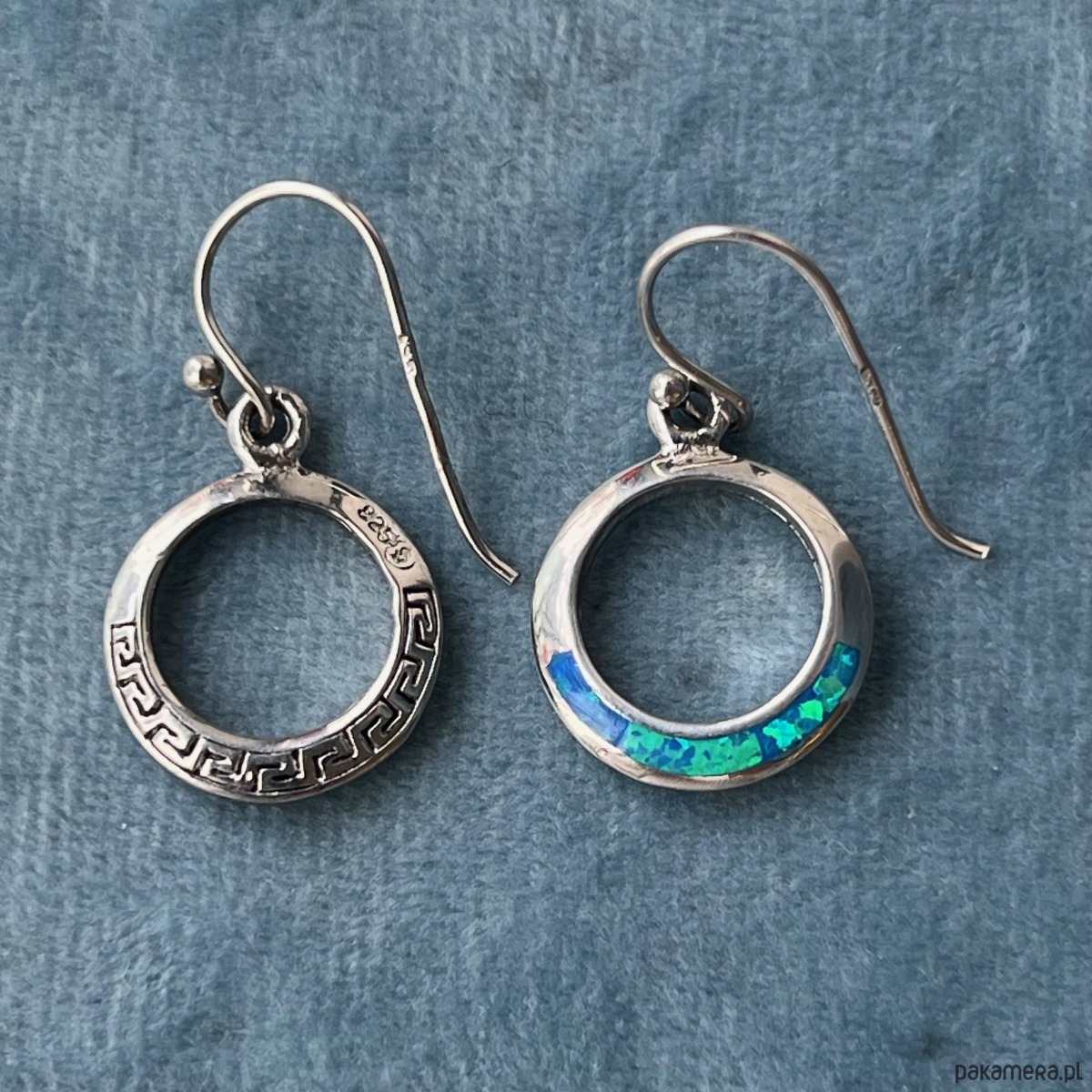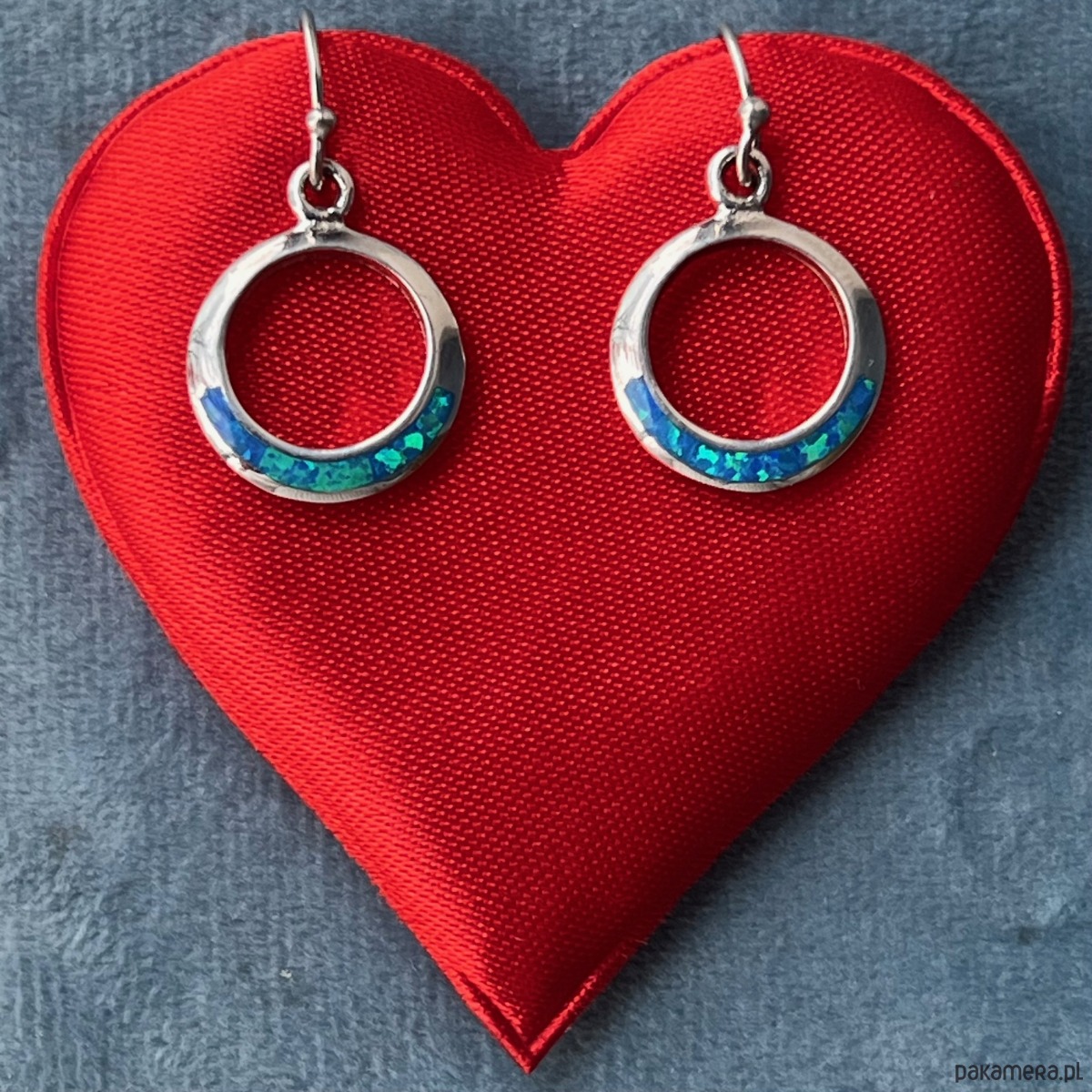 Koła, kółka kolczyki z opalem rekonstruowanym srebro pr. 925.