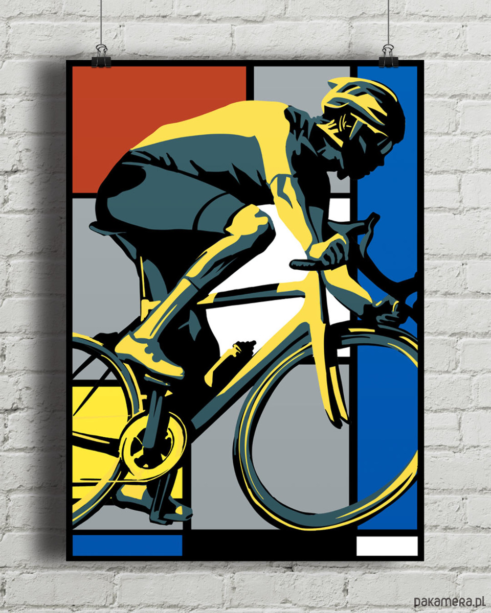 Kolarz w stylu Mondriana - plakat rowerowy