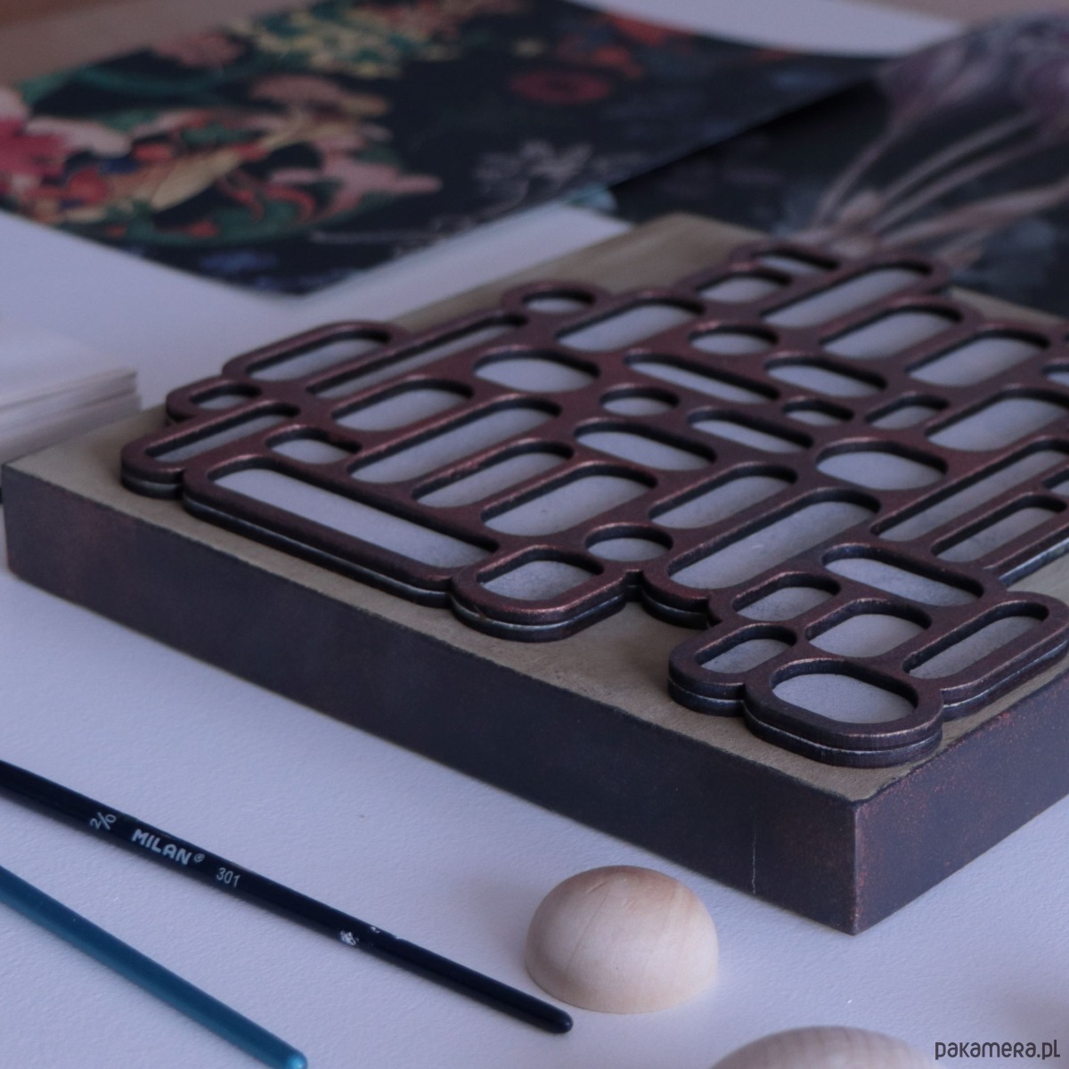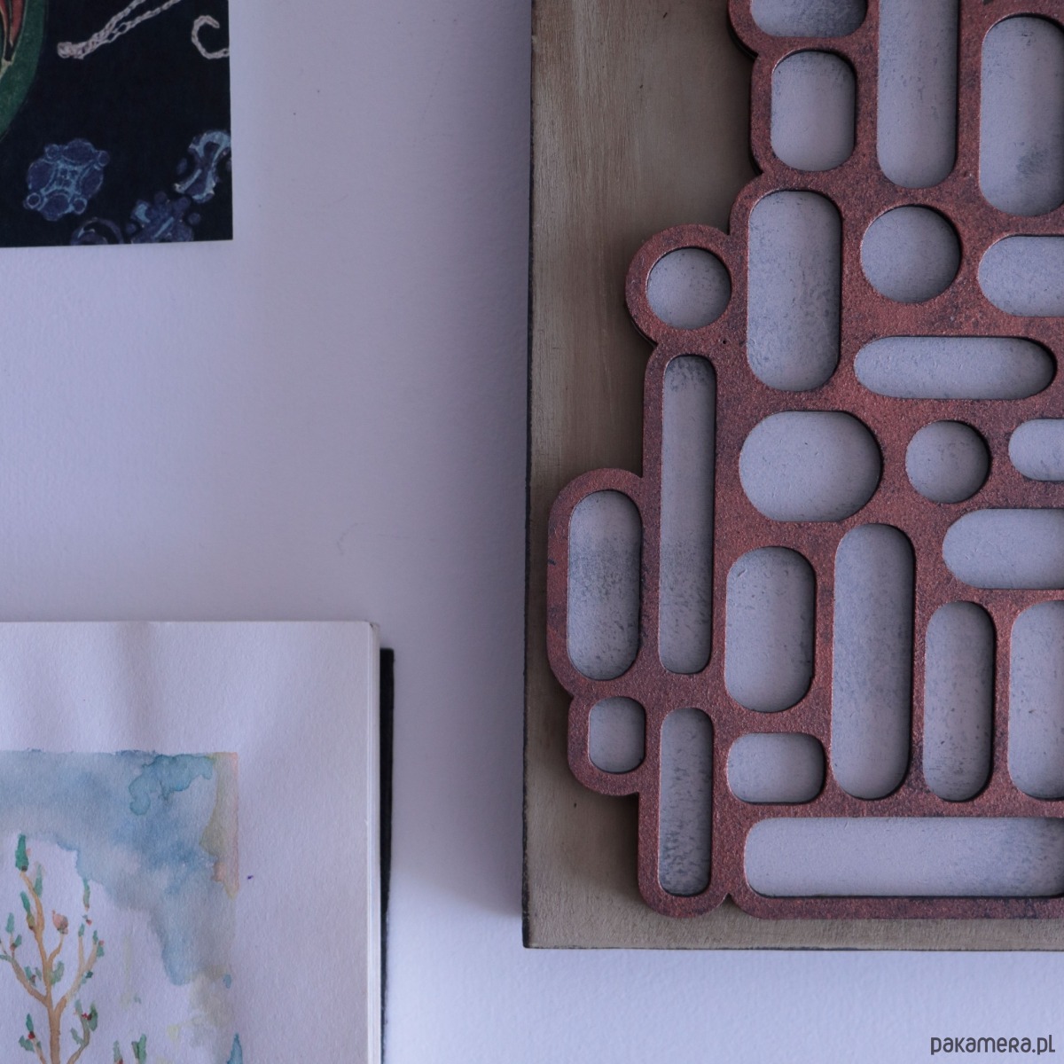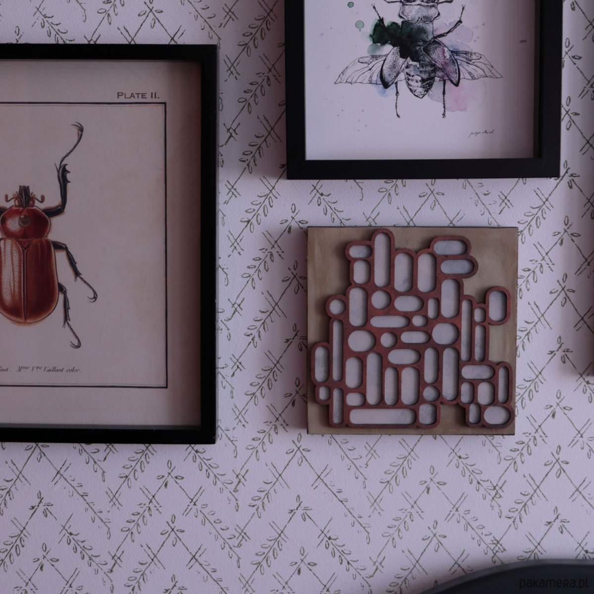 Drewniany obrazek 3D o wymiarach 20x20 cm.