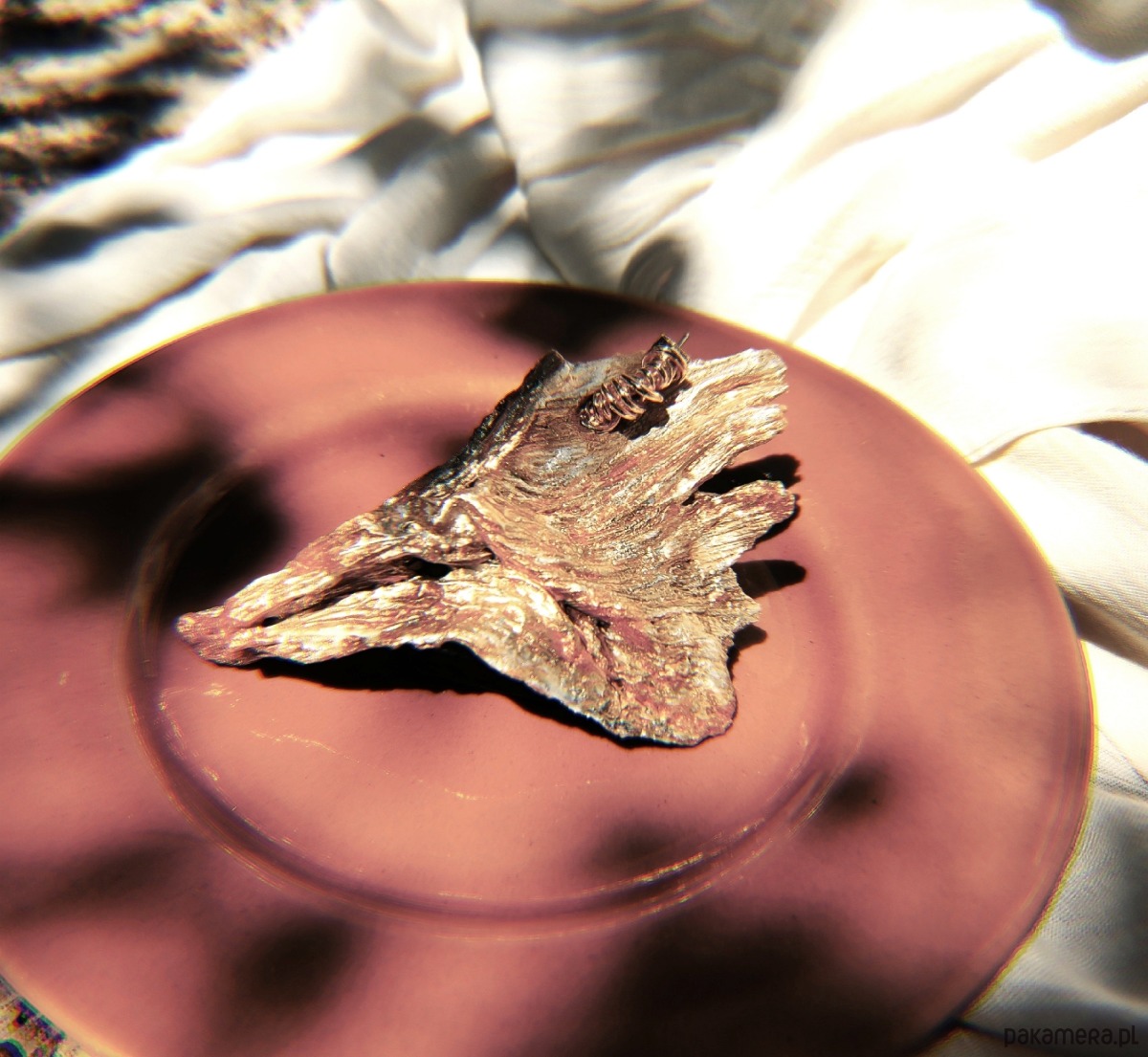 Absolutnie popisowy projekt! Duży pojedynczy i niesamowicie lekki kolczyk z suszonego liścia wielkiej agawy znad Morza Adriatyckiego.
